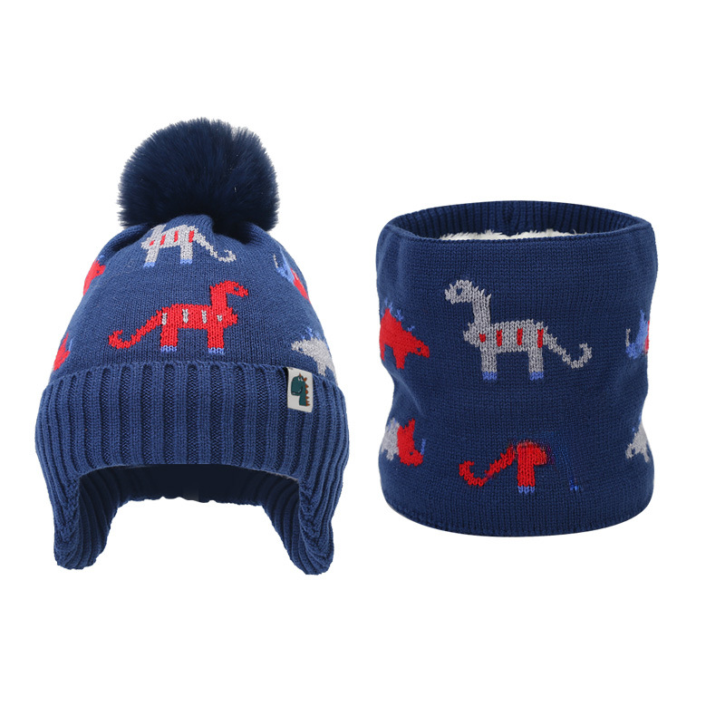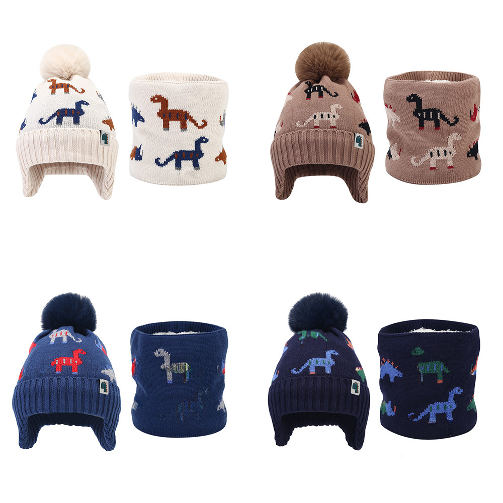 | nameOriginal | Cross-border Winter Children's Jacquard dinosaur fleece-lined knitted hat scarf suit boys' ear protection wool hat two-piece set |