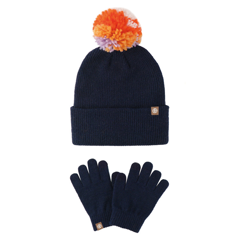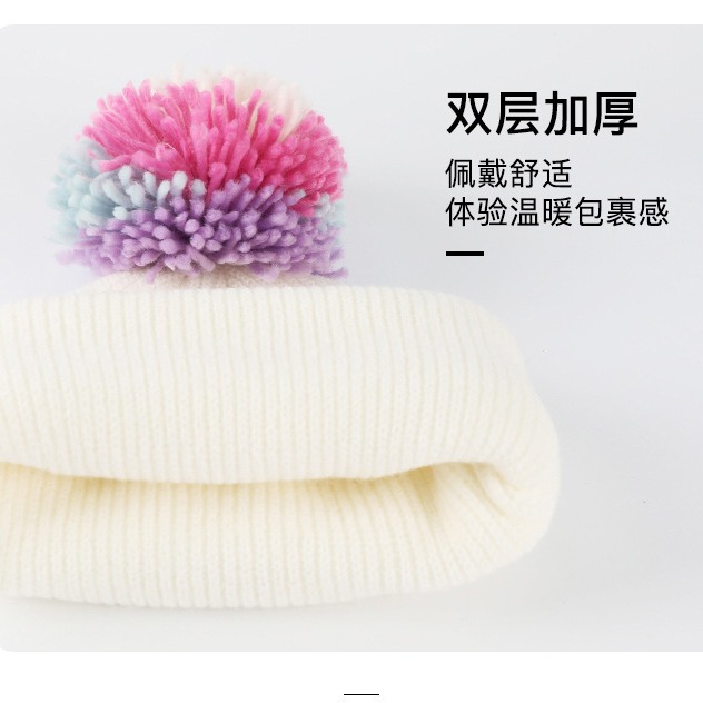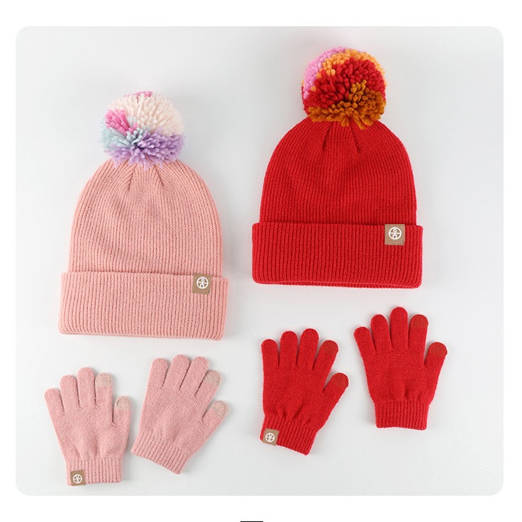 | nameOriginal | Cross-border Winter Children's Knitted Hat Gloves Two-piece Set Color Fur Ball fleece-lined Warm Cold-proof Wool Hat suit |
