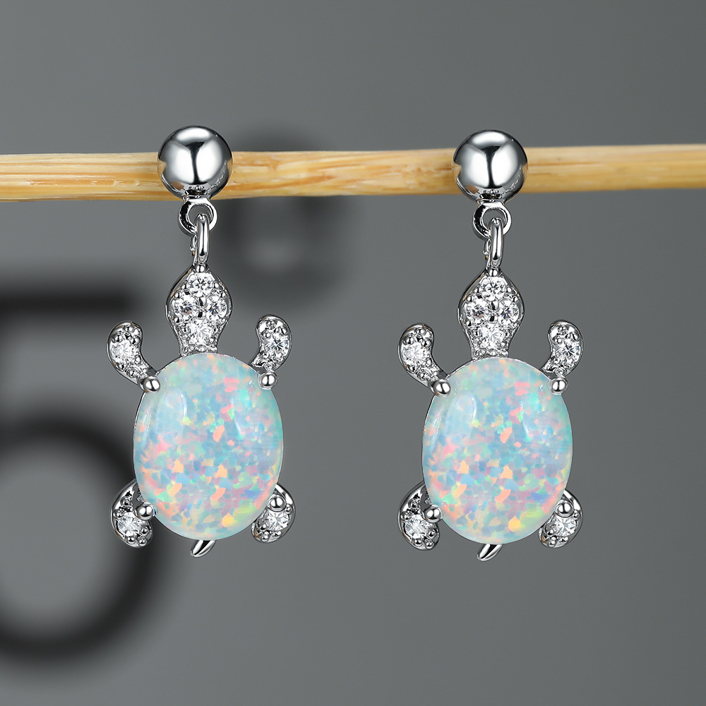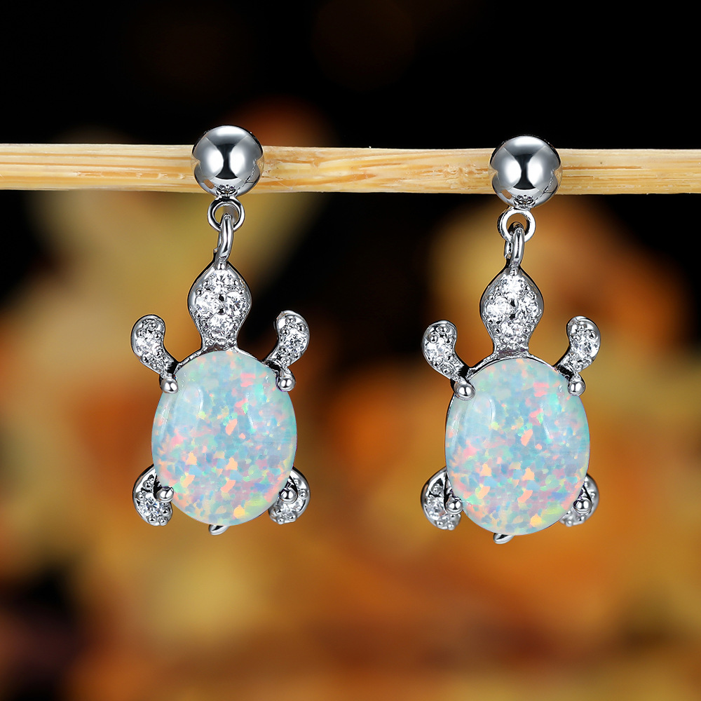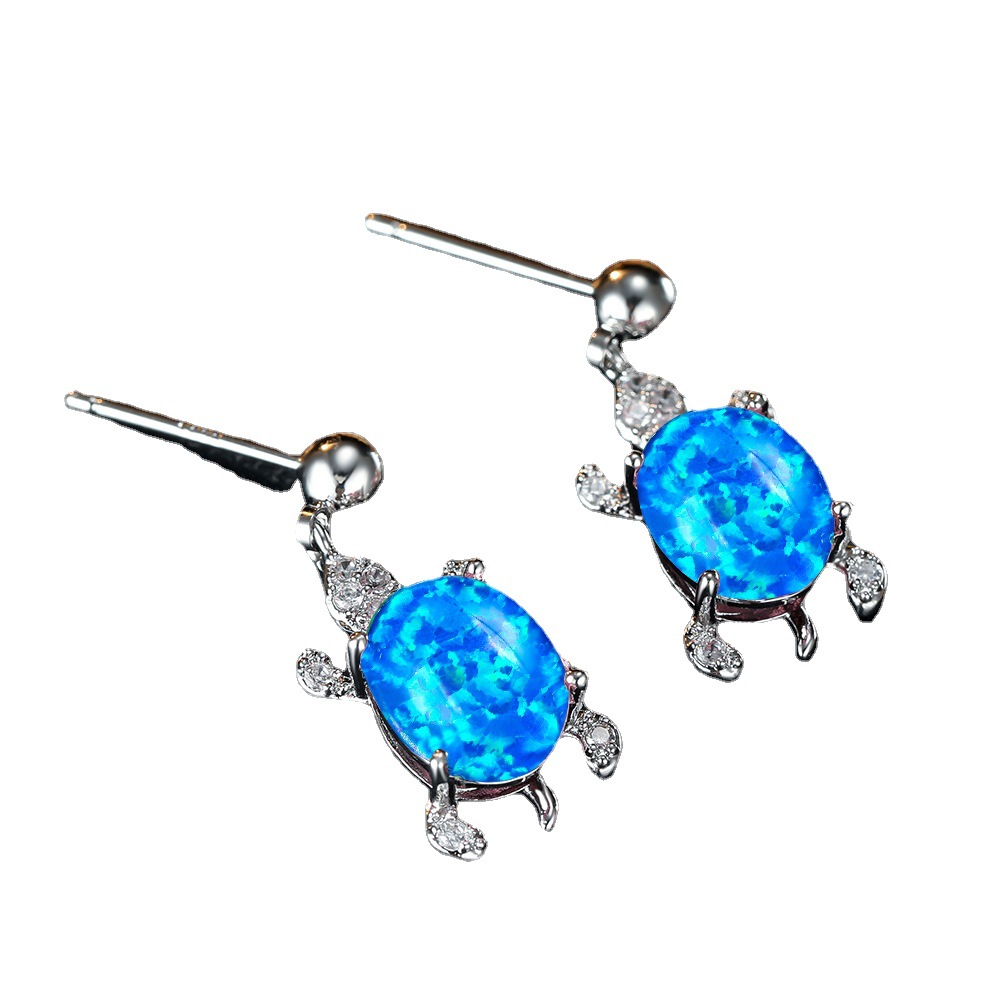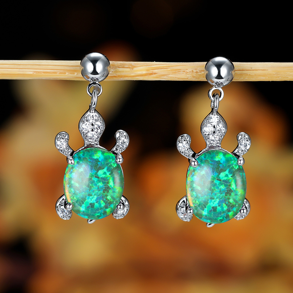 | nameOriginal | Cross-border wish personalized simple Platinum Blue White green oval opal turtle earrings women's all-match earrings |