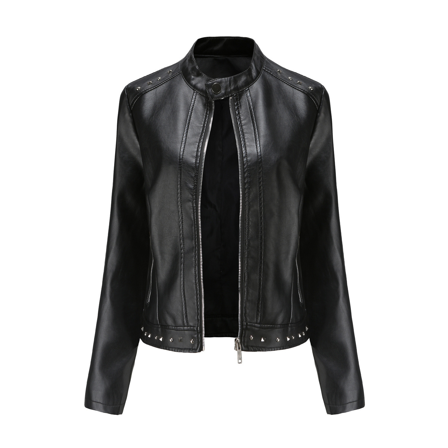 Cross-border wish women’s slim jacket thin spring and autumn coat women’s motorcycle clothing plus size stand collar leather jacket fashion
