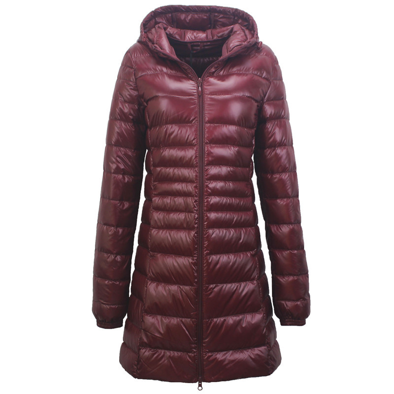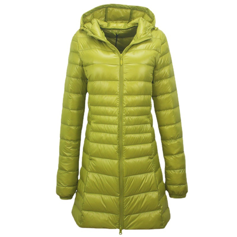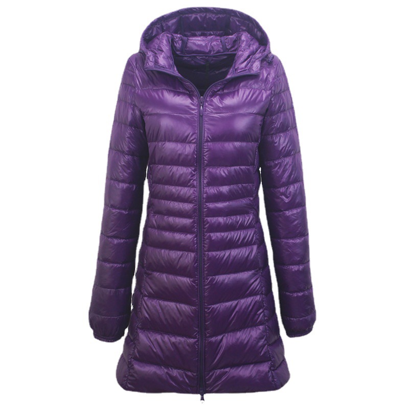 Cross-border women's autumn and winter hooded down jacket plus size lightweight slim mid-length women's coat S-7XL