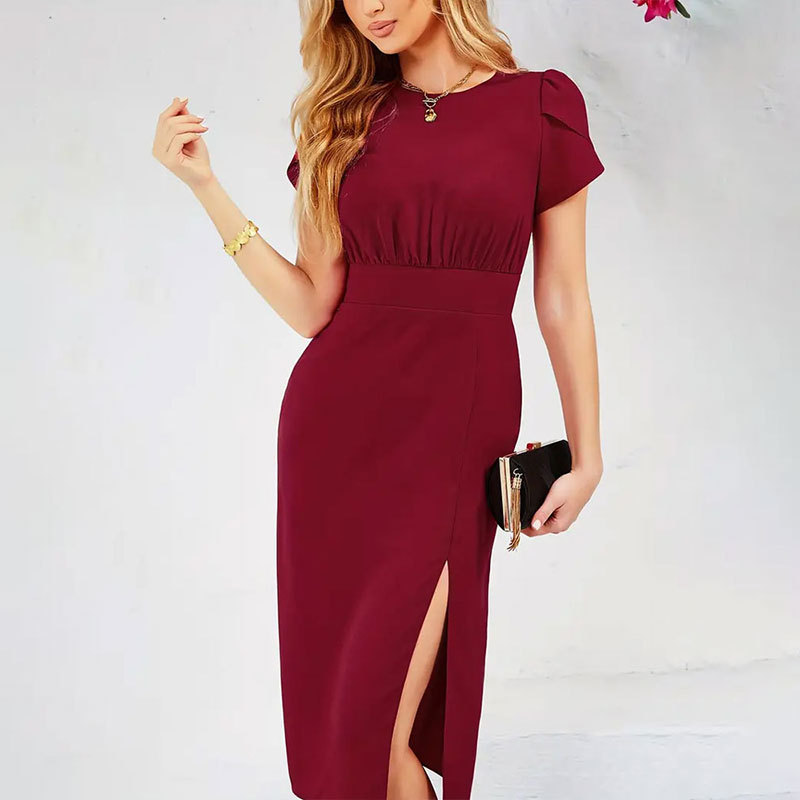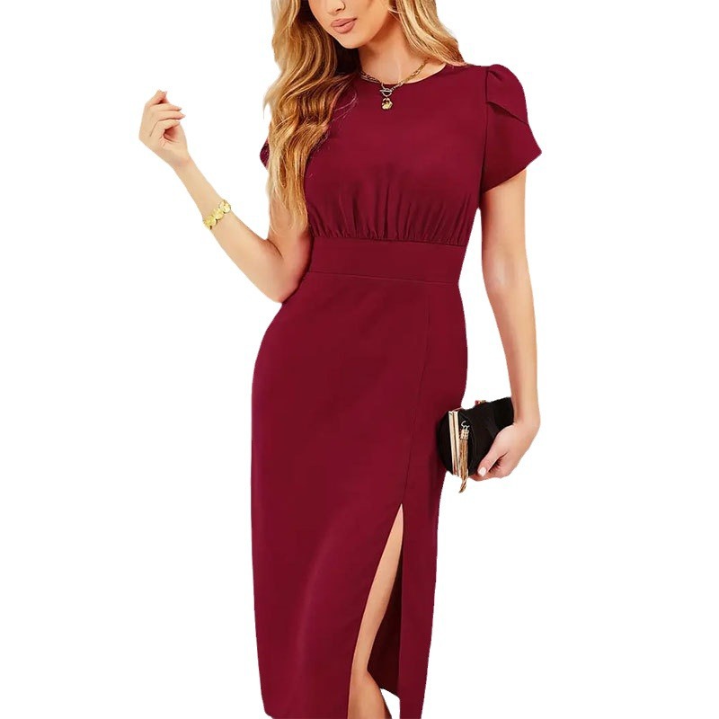 | nameOriginal | Cross-border women's clothing 2024 Summer new elastic waist slit pleated dress elegant round neck commuter hip skirt |