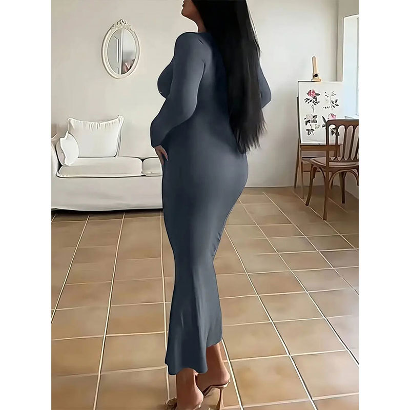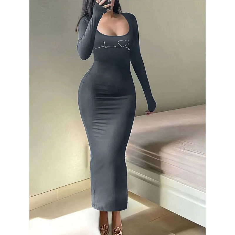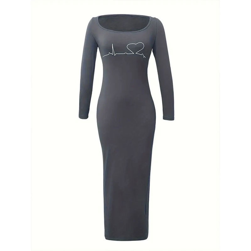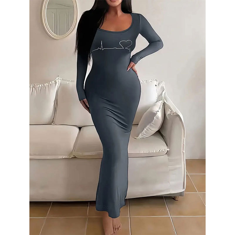 | nameOriginal | Cross-border women's clothing 2024 Summer new ultra-long printed slim fit dress round neck long sleeve sexy hip skirt hot |