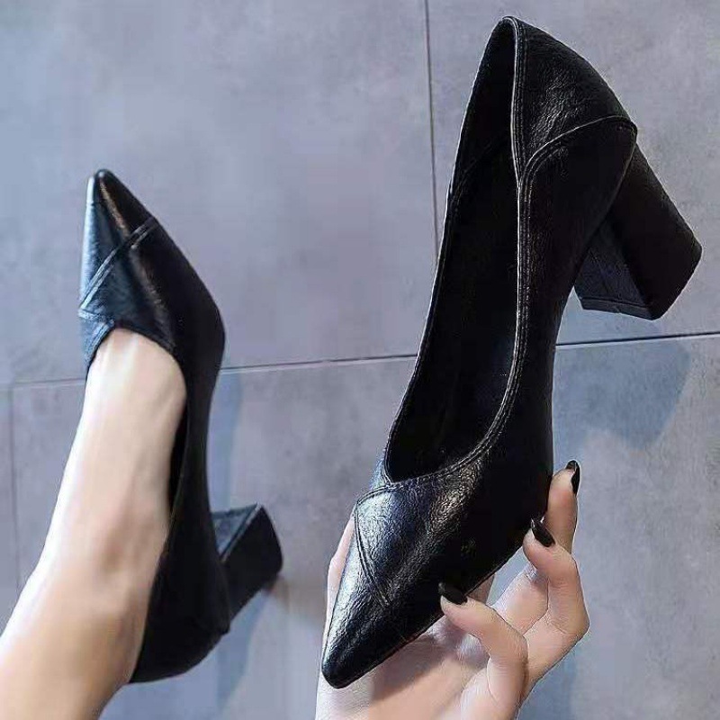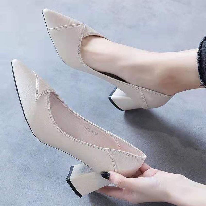 | nameOriginal | Cross-border Women's Shoes 2024 Spring & Fall New French Pointed Toe High Heels Women's Medium Heel Versatile Shallow Mouth Slip-on Thick Heel |