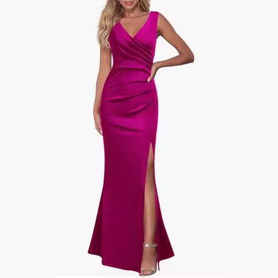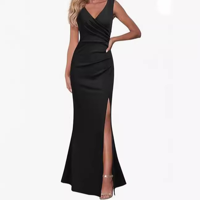 | nameOriginal | Cross-border Women's sleeveless V-neck slit evening dress cocktail party dress in 2024 |