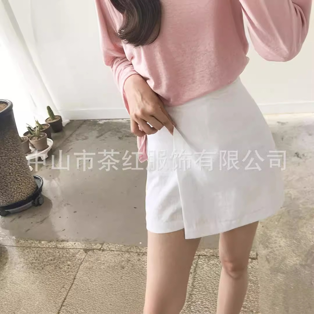 | nameOriginal | Cross-border Women's Summer A- line Short Skirt Fake Two-piece Solid Color Cotton High Waist Casual Shorts |