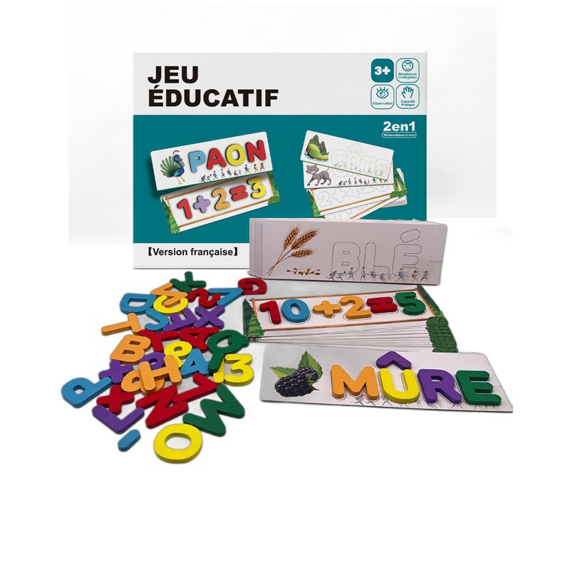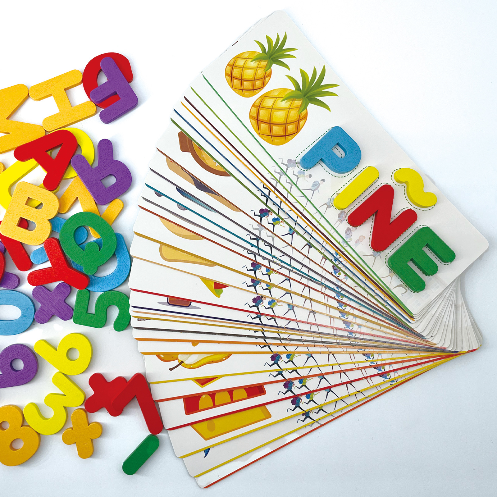 Cross-border wooden game card word practice spelling calculation wooden magnetic teaching aids early education Italian German