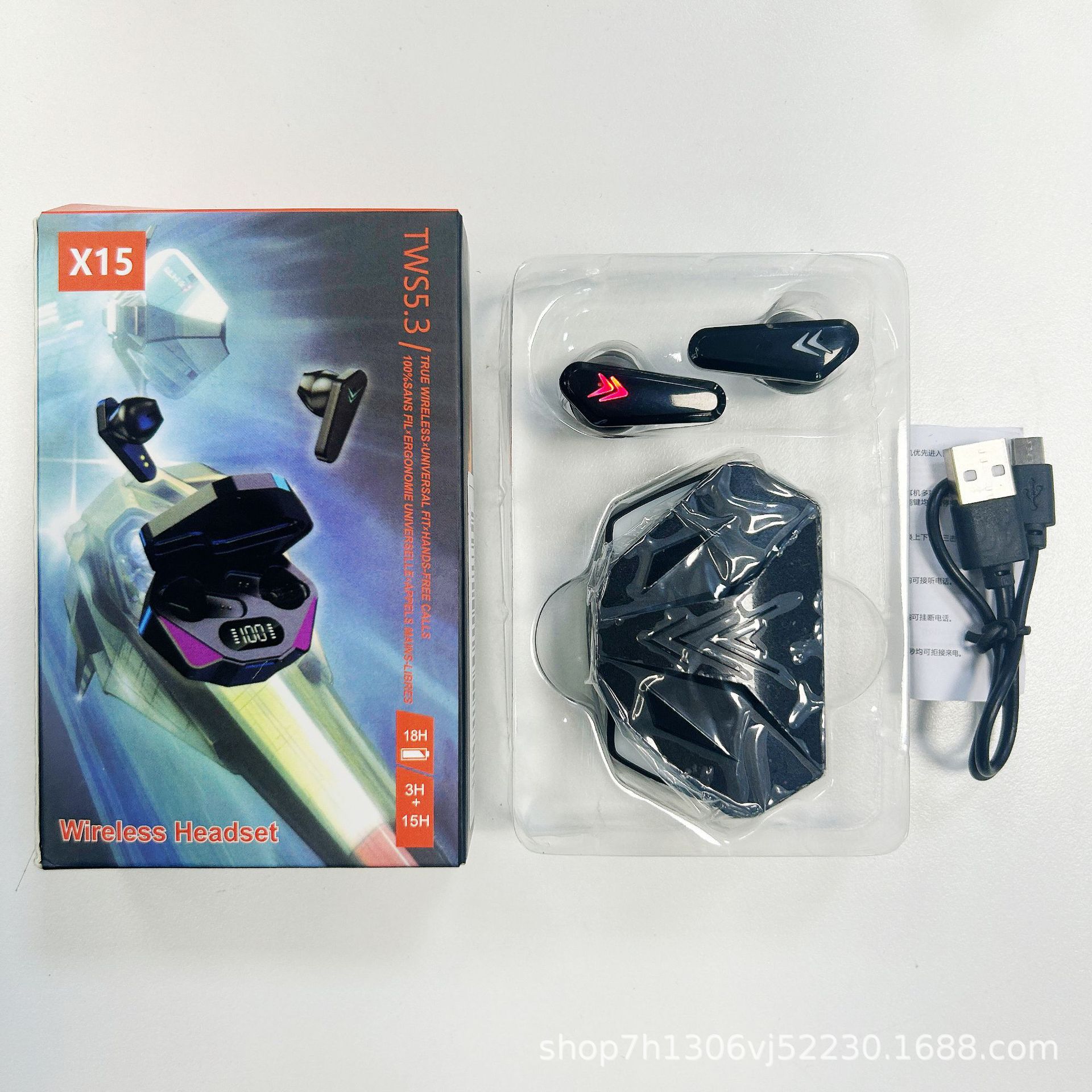 | nameOriginal | Cross-border X15 e-sports game Bluetooth headset real wireless 5.2 long endurance low latency HD digital display factory direct sales |