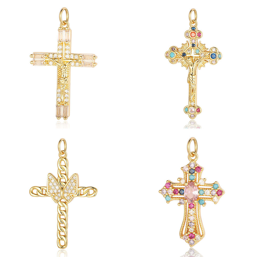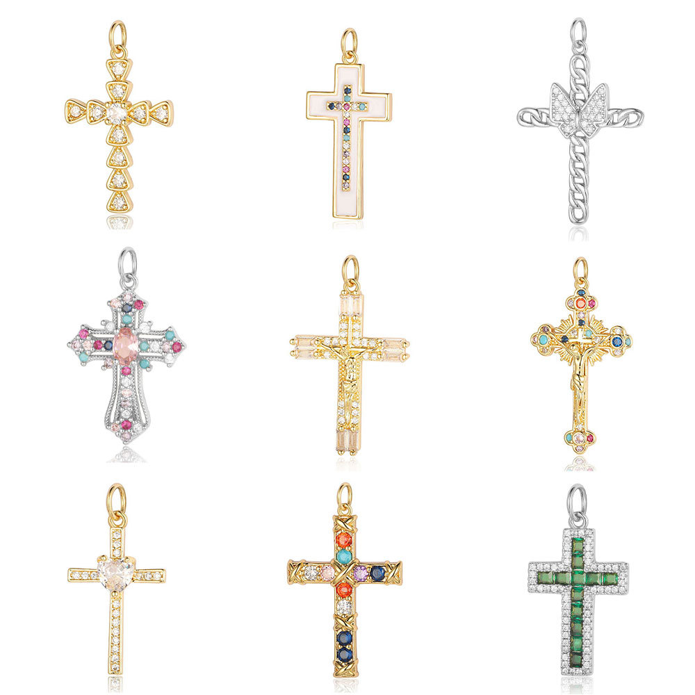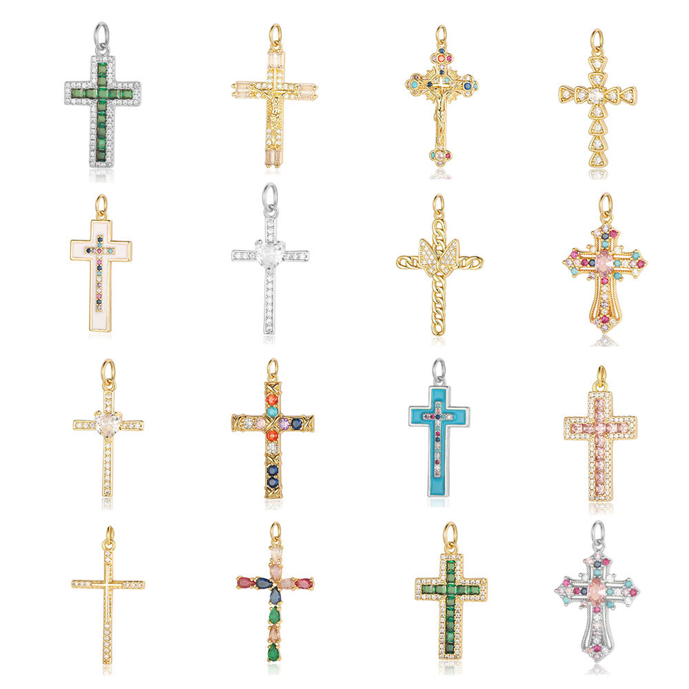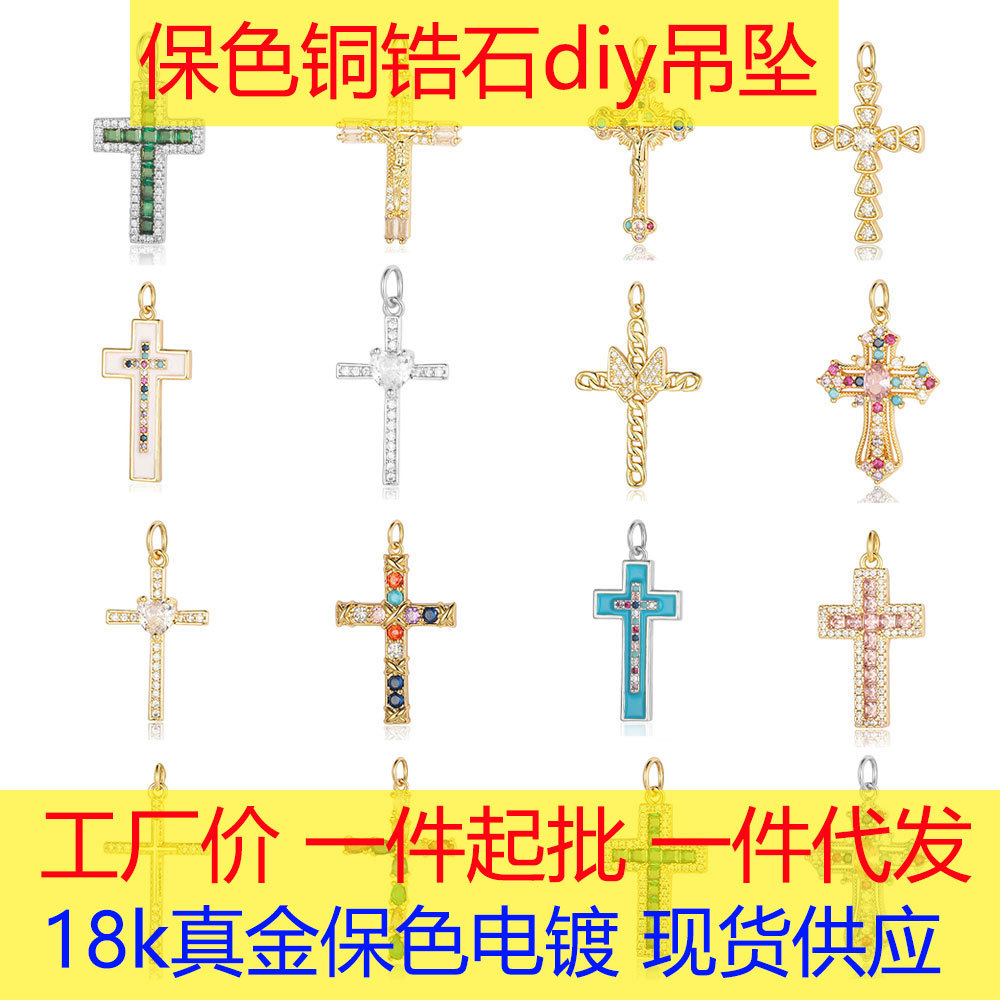 | nameOriginal | Cross copper zircon diy jewelry accessories pendant European and American copper micro-inlaid cross belief necklace bracelet pendant |
