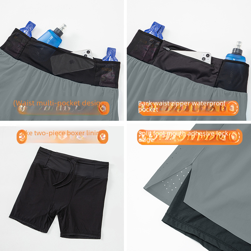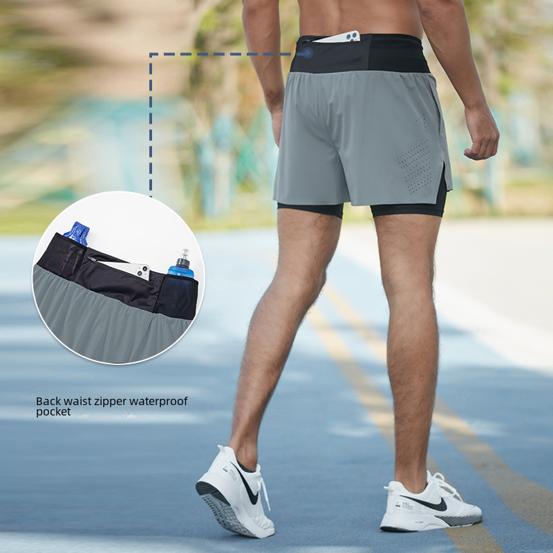 Cross Country Running Sports Shorts Men's Summer Outdoor Marathon Fitness Basketball Double-Layer Fake Two-Piece Running Quick-Dry Shorts