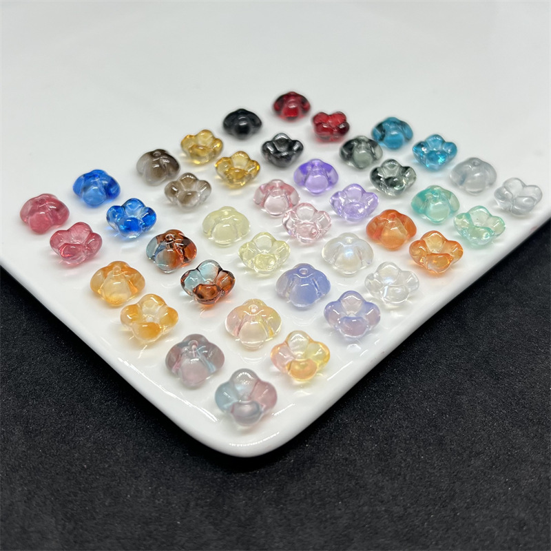 | nameOriginal | Cross-hole glass beads fat osmanthus 10mm fat Lotus mist four-petal flower direct diy bracelet beaded material loose beads |