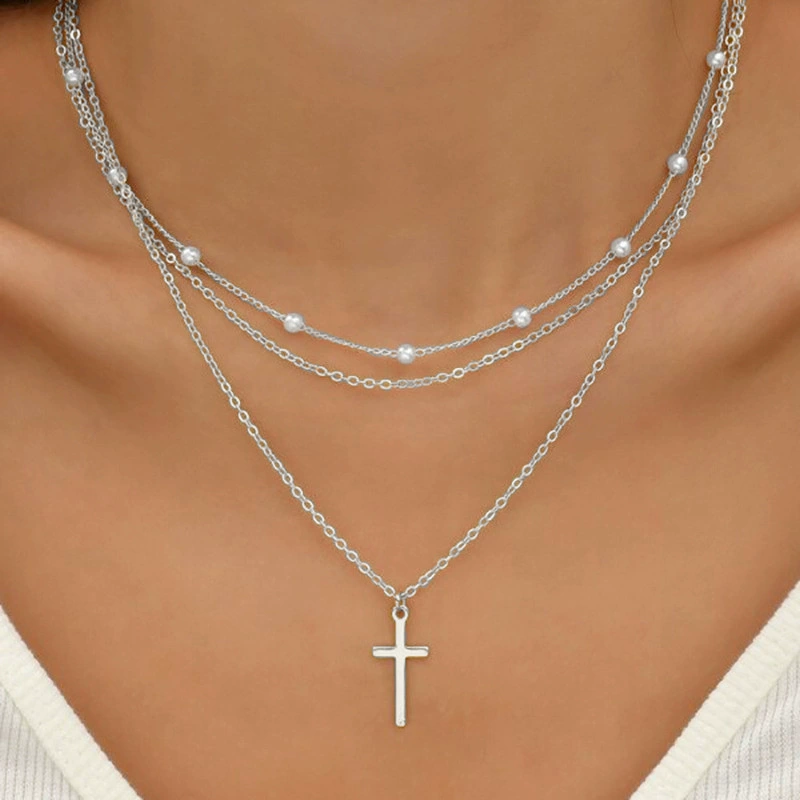 | nameOriginal | Cross pendant necklace artificial pearl clavicle chain cross pendant retro multi-layer stacking necklace |