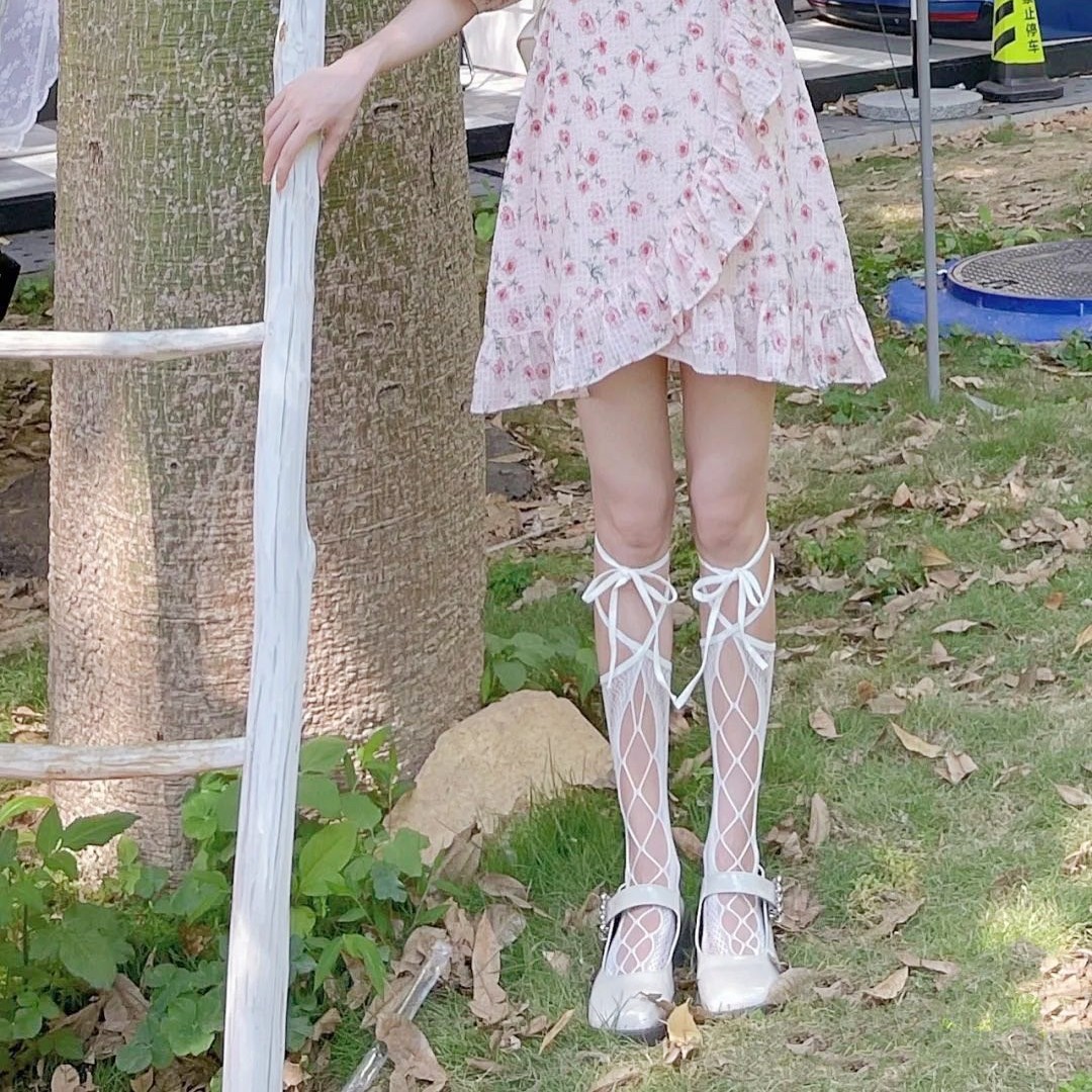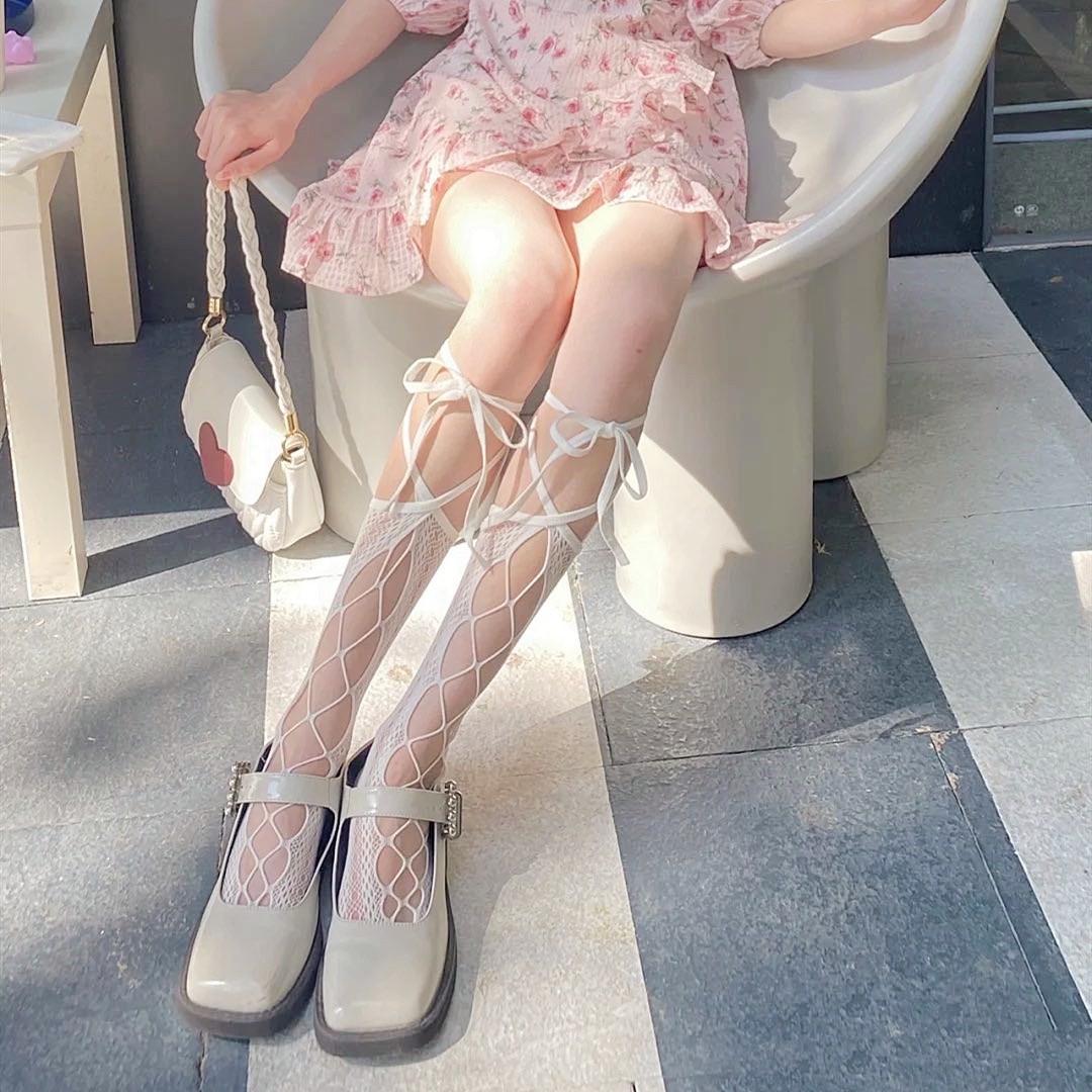 | nameOriginal | Cross Strap Hollow lolita Socks Women's Summer Breathable jk Hot Girls Japanese Solid Color Sweet Calf Mid-Length Socks |