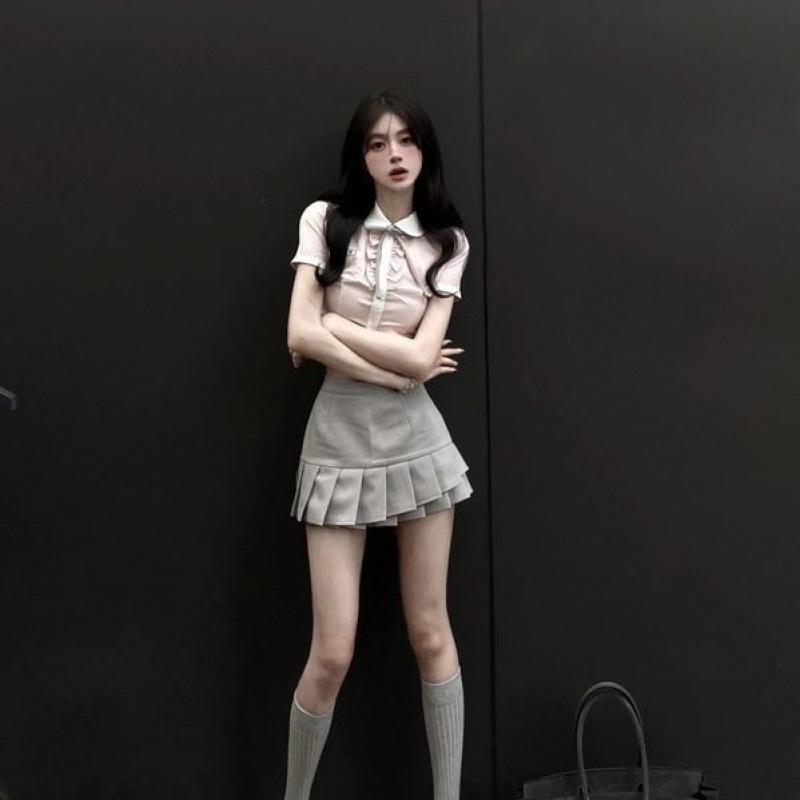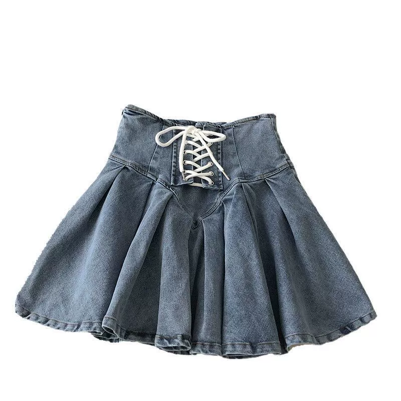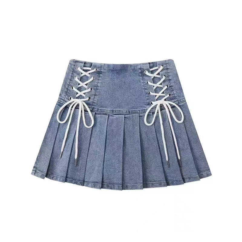 | nameOriginal | Cross stretch denim Korean style strappy pleated skirt |