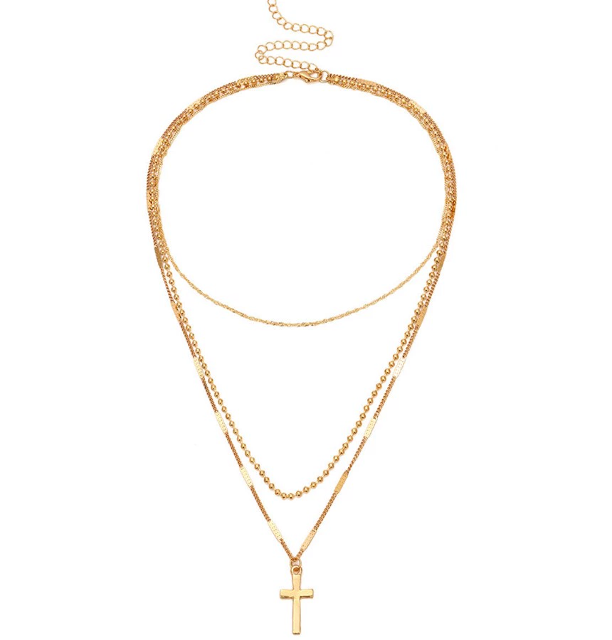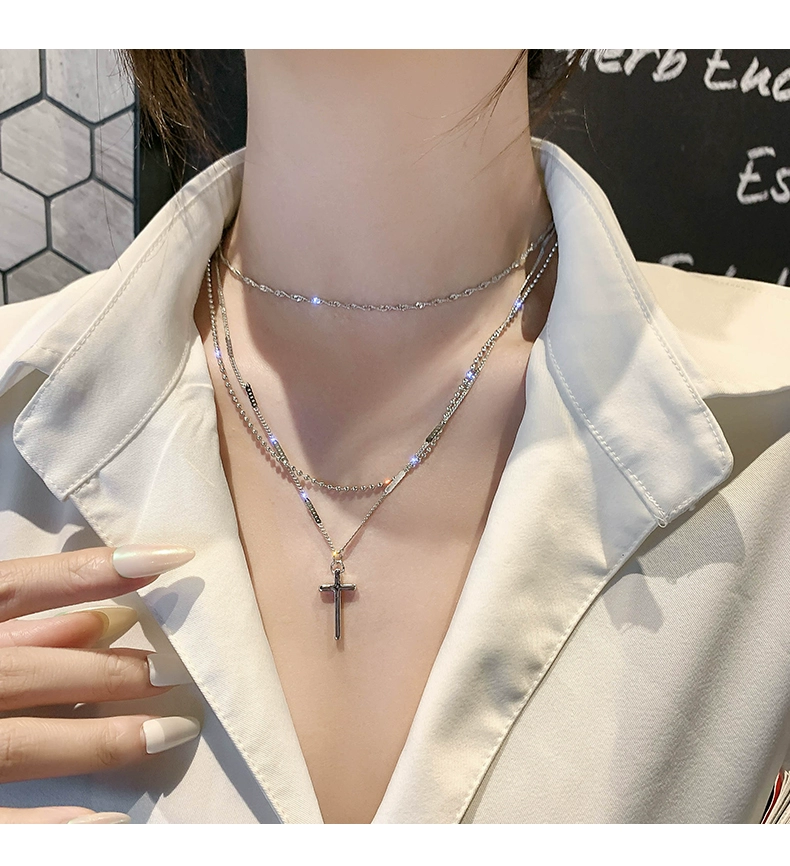| nameOriginal | Cross three-layer necklace for women, high-end light luxury titanium steel clavicle chain, European and American fashion personality, simple sexy and cool necklace |