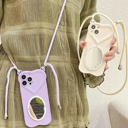 | nameOriginal | Crossbody strap rope iphone14/15promax mirror phone case 12/11 suitable for Apple 13promax love silicone case anti-fall protective shell single shoulder strap chain lanyard new xs |