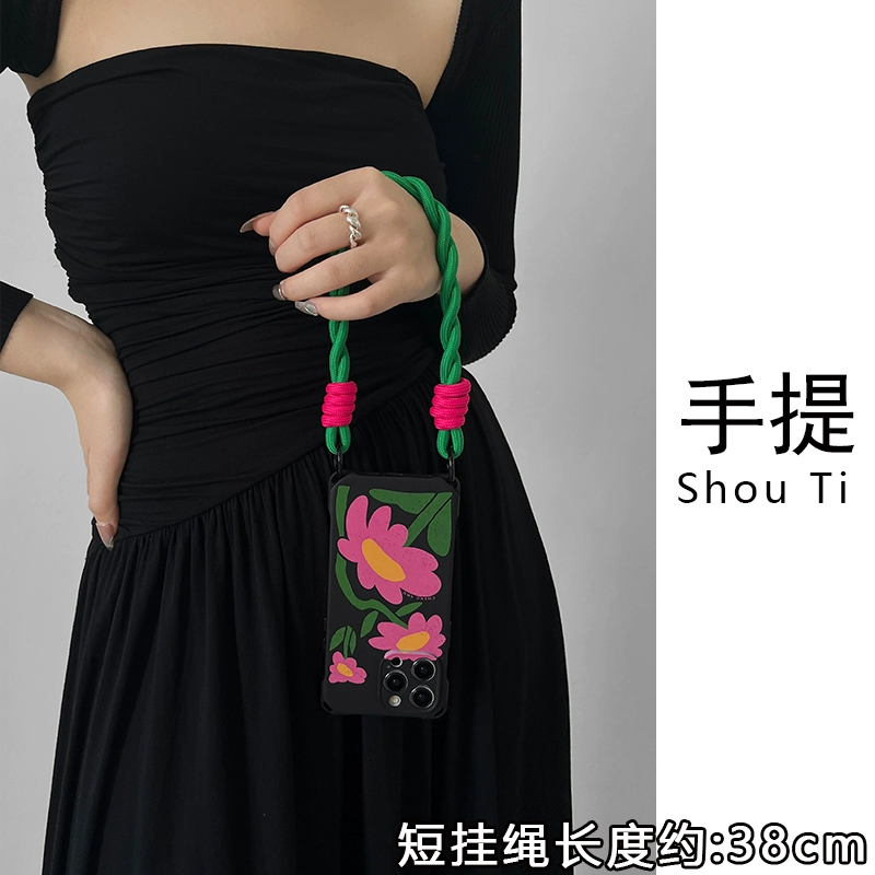 | nameOriginal | Crossbody suitable for Apple Huawei Honor Xiaomi 13 mobile phone case oil painting pink flowers iphone15promax silicone black 14 four-corner opening all-inclusive 11 niche 12pro portable lanyard |