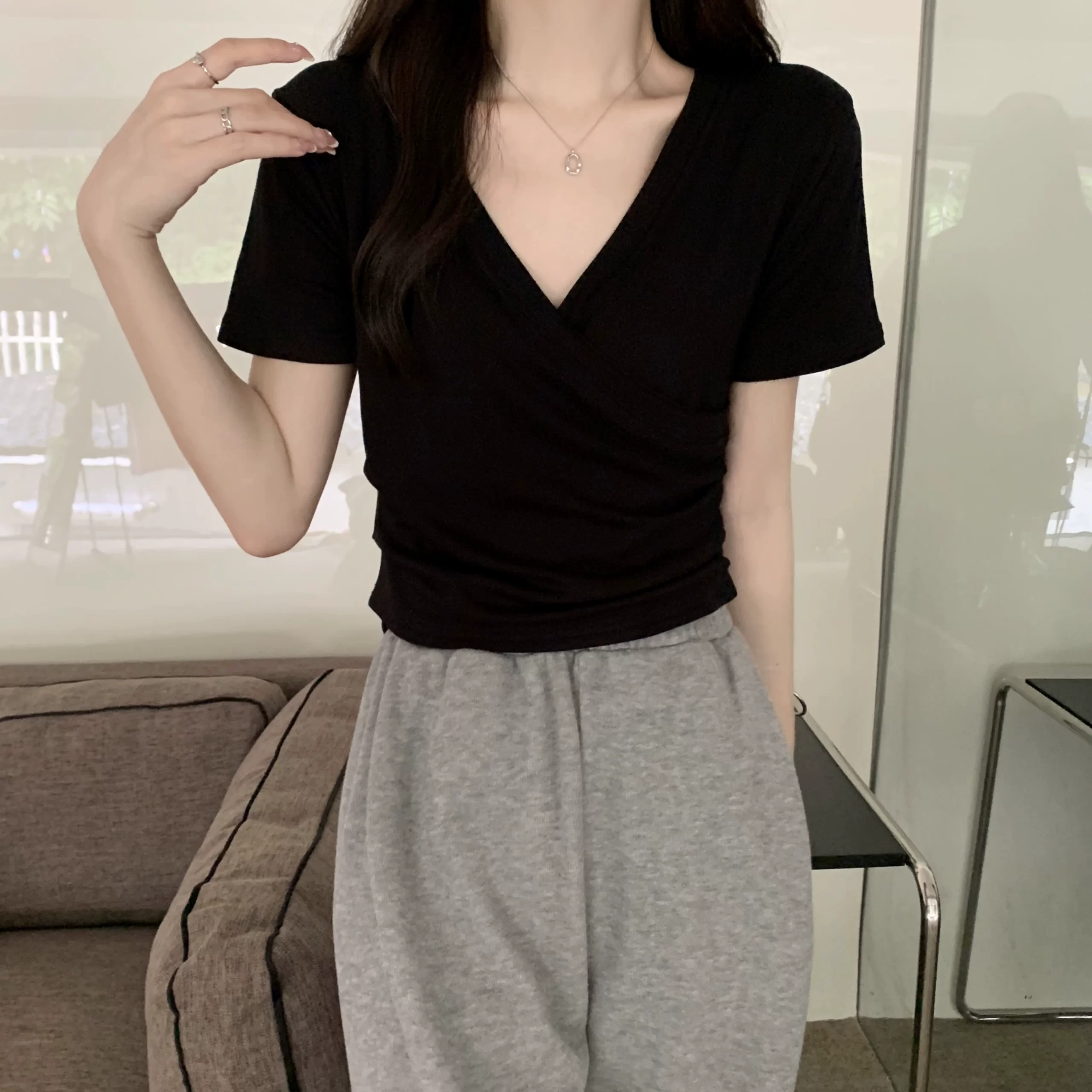| nameOriginal | Crossover large size fat girl loose t-shirt that covers the flesh and looks slimming |