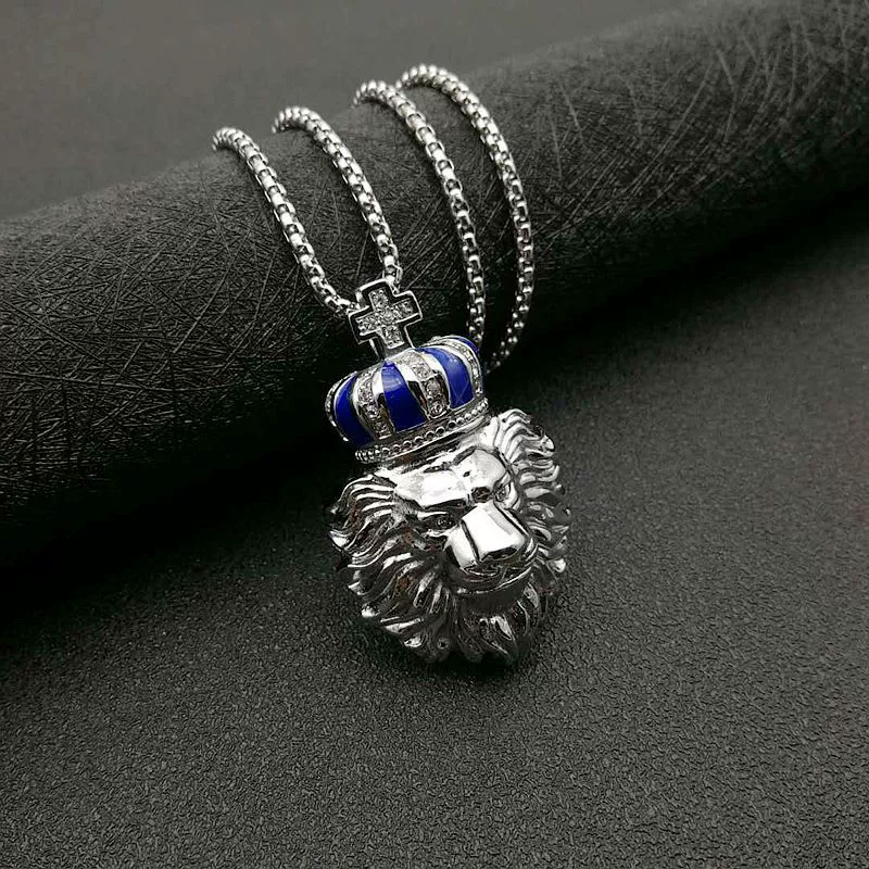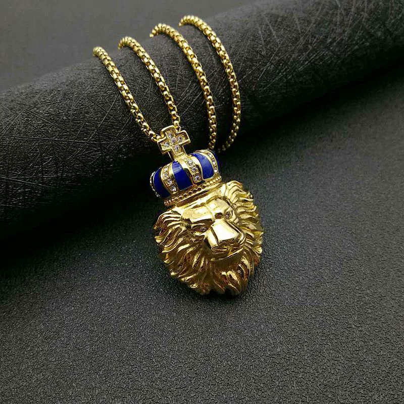 | nameOriginal | Crown lion head pendant necklace titanium steel color-preserving gold-plated diamond European and American personalized versatile hip-hop HIPHOP jewelry |