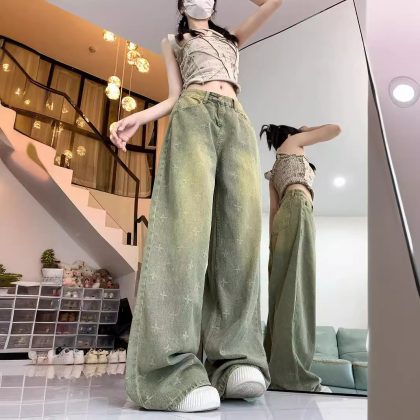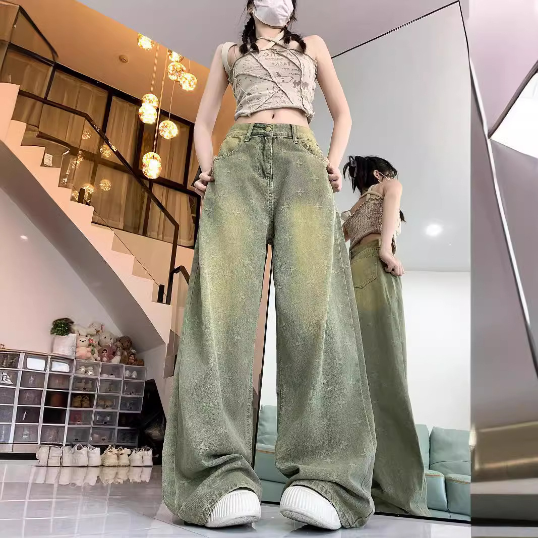 | nameOriginal | Cruciferous Design Explosive Heavy Craft Retro Dressed Jeans All-match Loose Straight Pants |