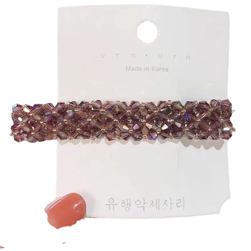 Crystal Beaded Hand-woven Rice Beads Spring Clip Back Head Temperament Hairpin Coiler New Summer Hairpin