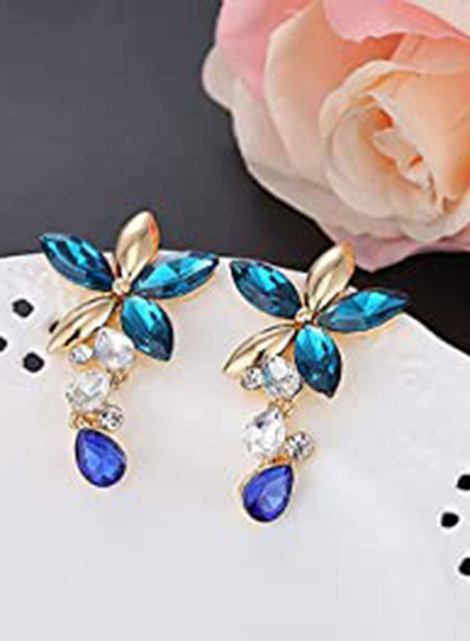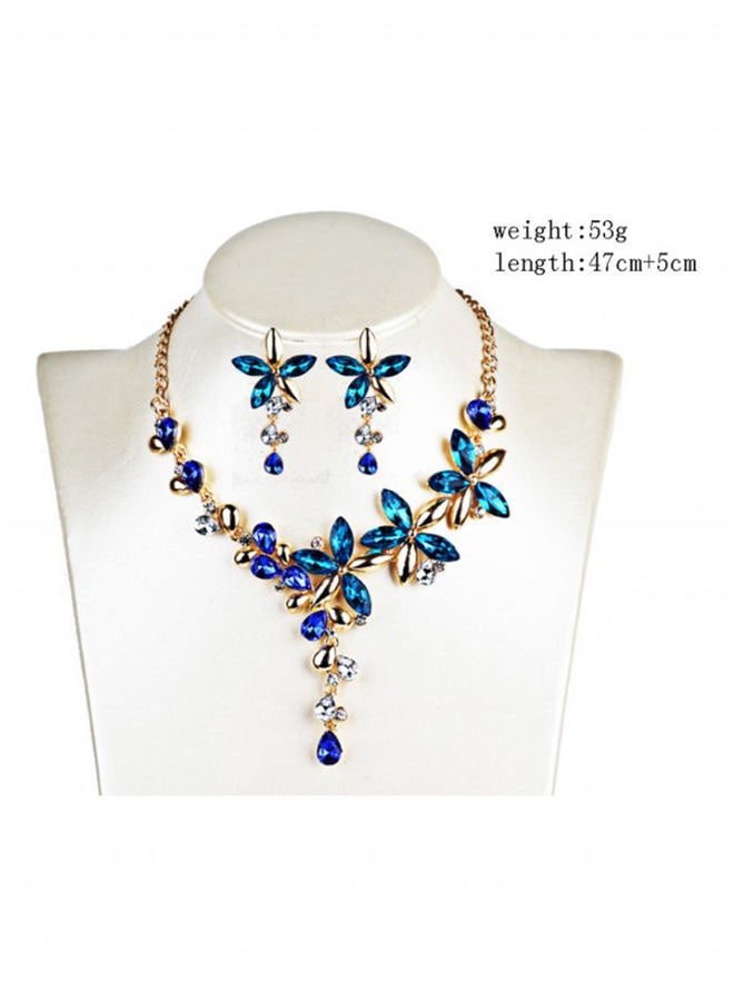 Vintage Crystal Floral Pendent Necklace Earrings Set