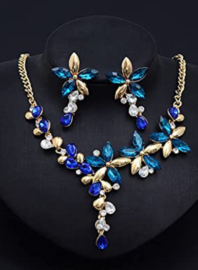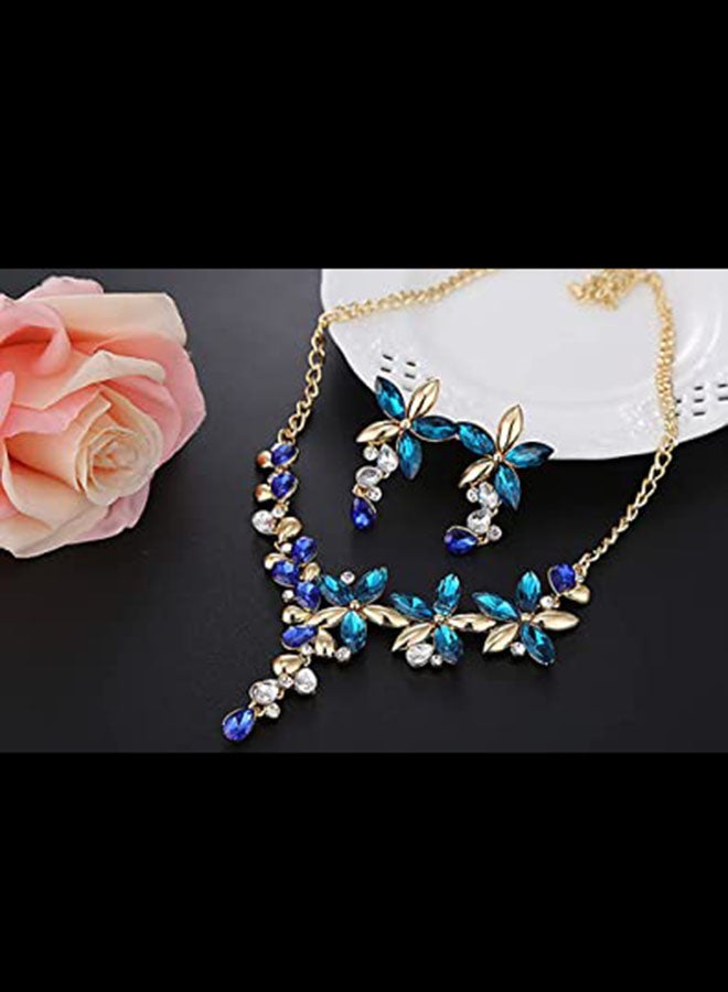 Crystal Flower Pendant Necklace and Earrings Set with a Vintage Touch.