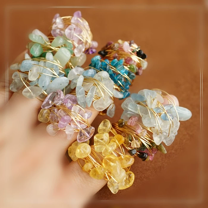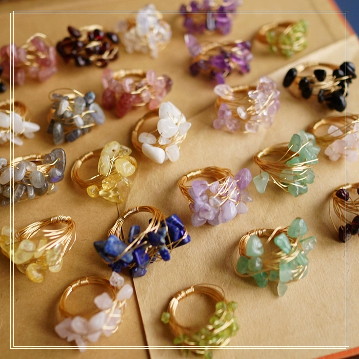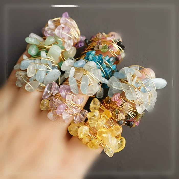 | nameOriginal | Crystal Garnet Rose Quartz Amethyst Peridot Lapis Lazuli Gravel Handmade Wrap Ring Bohemian |