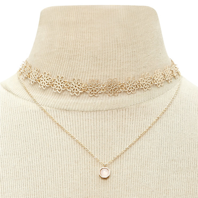 Crystal gem pendant multi-layer flower style chain necklace female cross-border jewelry stall products