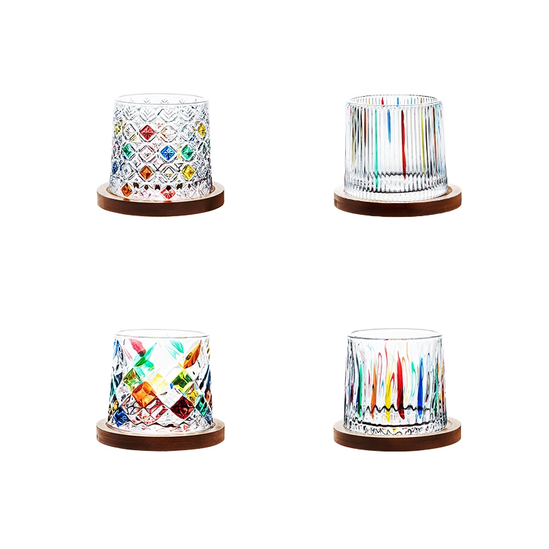 | nameOriginal | Crystal glass with coaster rotating cup tumbler decompression cup whiskey wine beer cup household water cup |