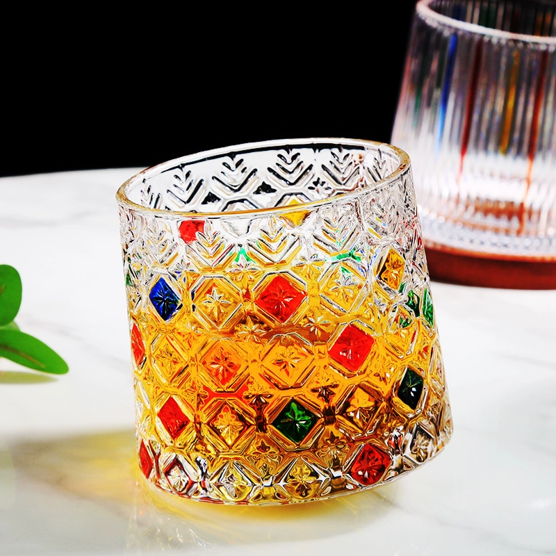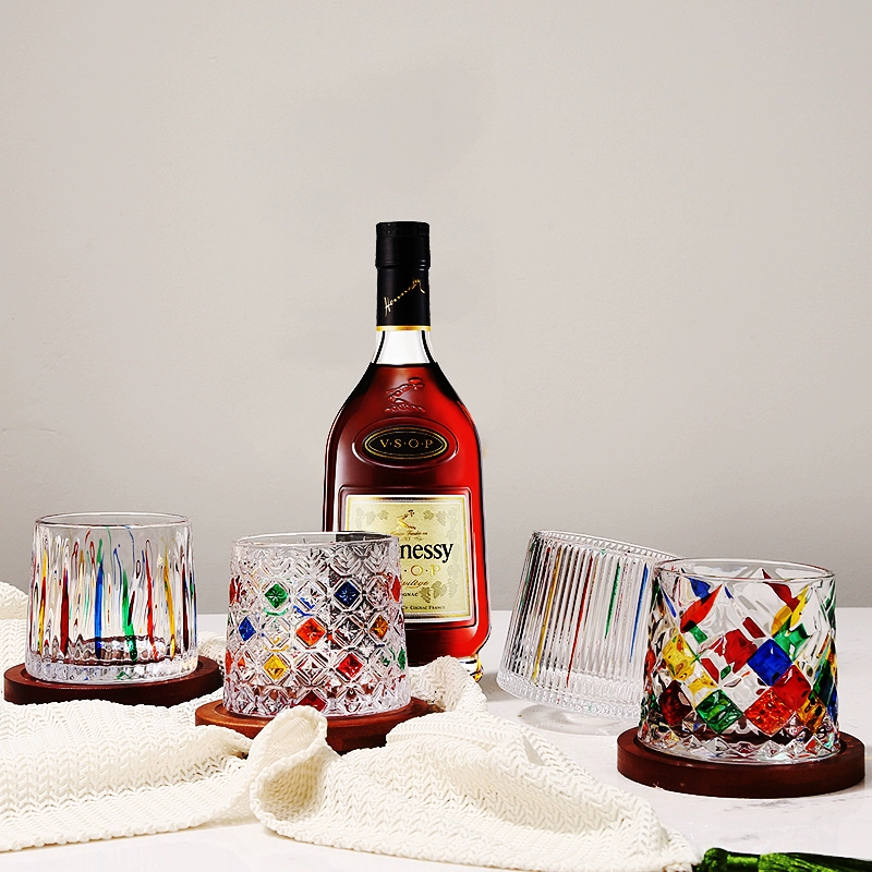 | nameOriginal | Crystal glass with coaster rotating cup tumbler decompression cup whiskey wine beer cup household water cup |