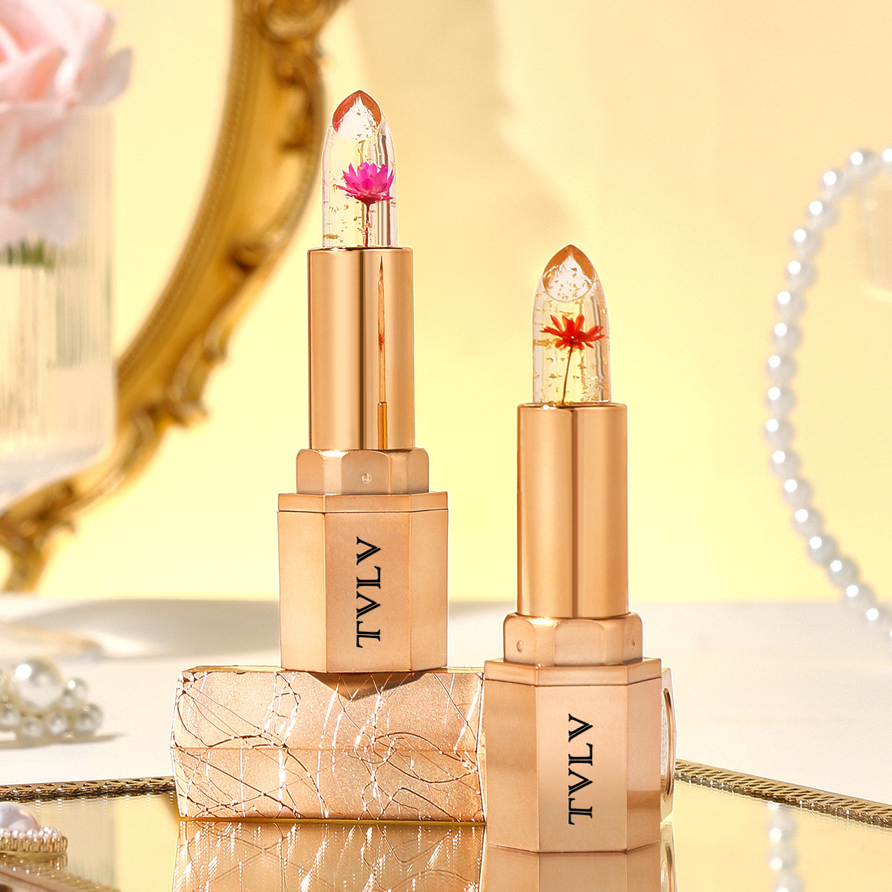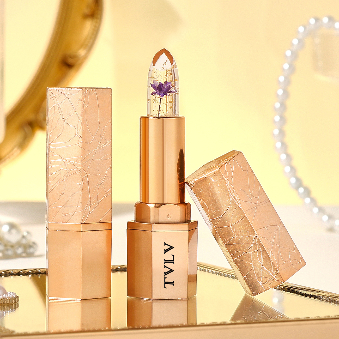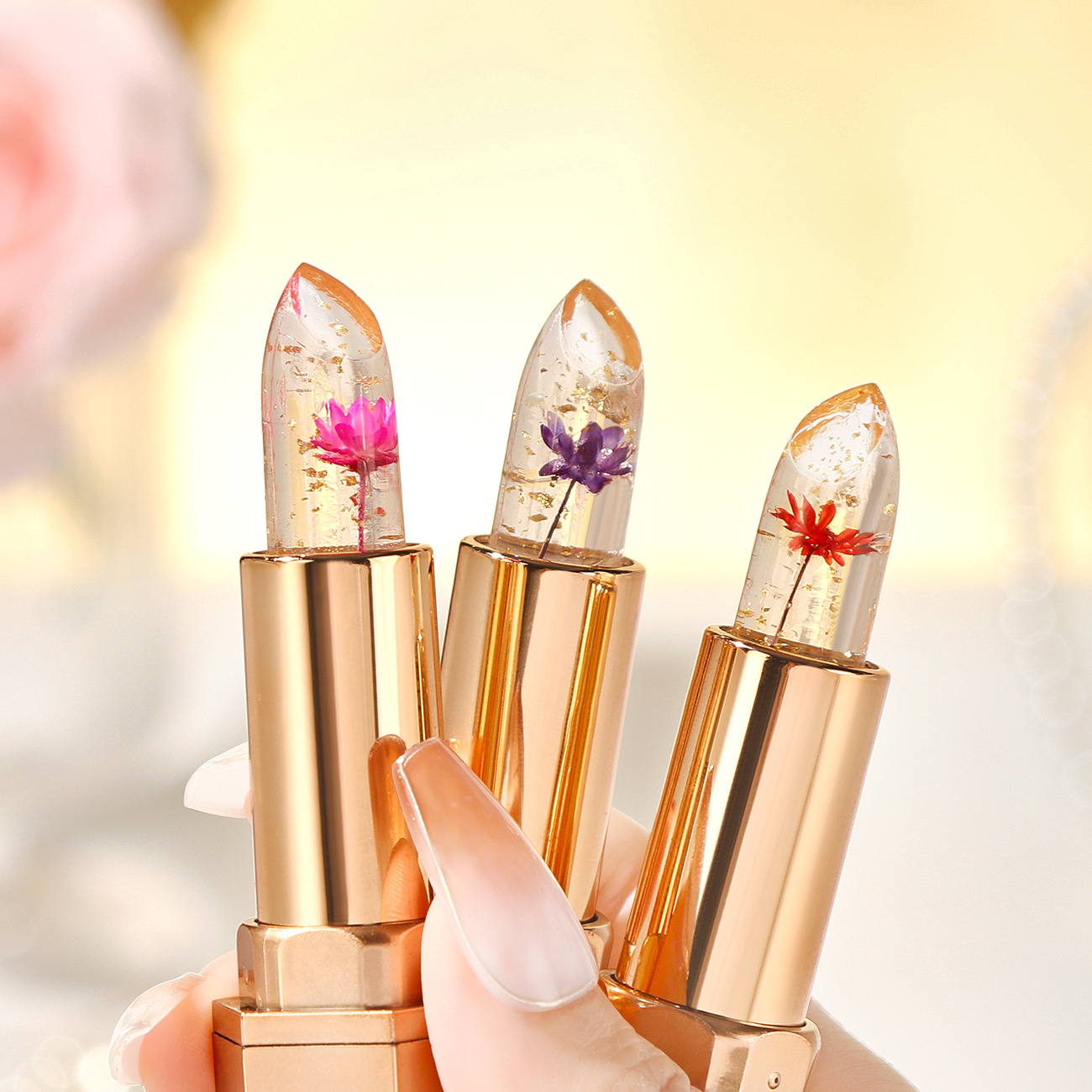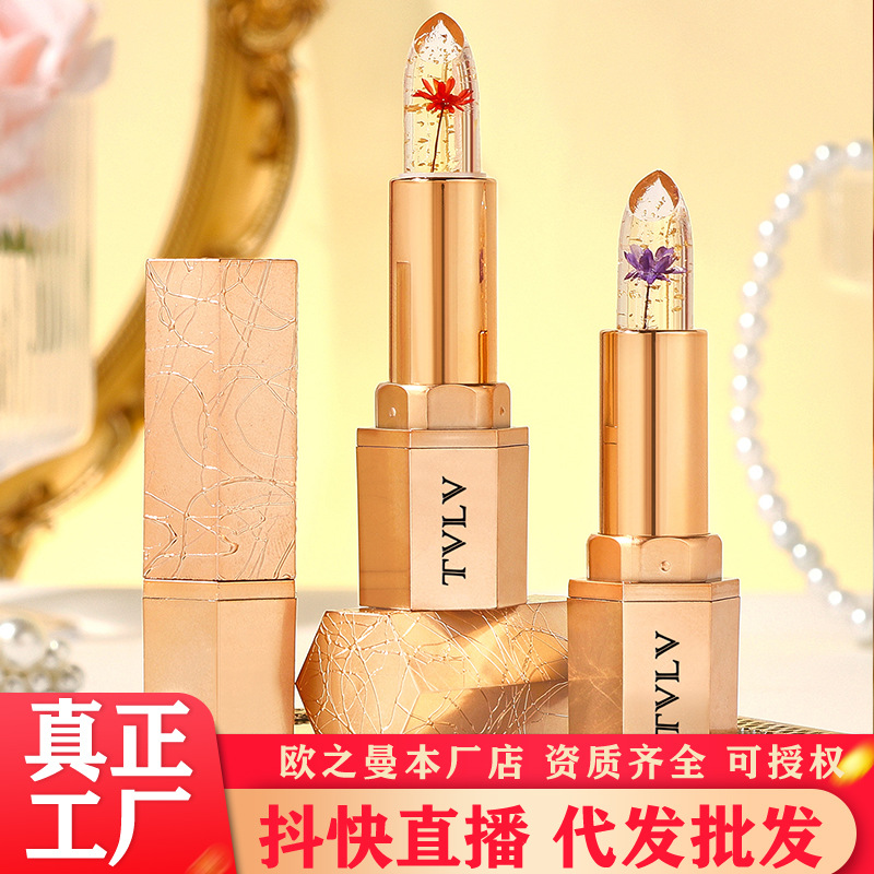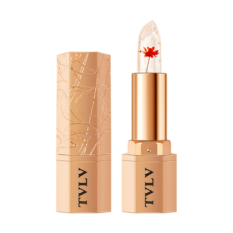 Crystal gold foil petals lipstick cross-border wholesale moisturizing non-stick cup does not fade warm lip balm color change lipstick women