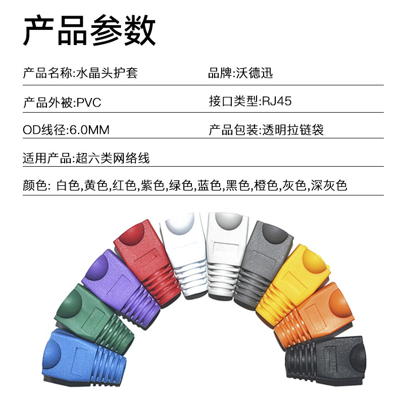 | nameOriginal | Crystal head rubber sleeve sheath color Crystal Head sheath ten color optional RJ45 sheath Crystal protective sleeve wholesale |