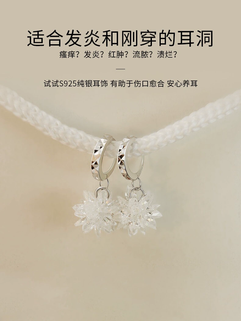 | nameOriginal | Crystal Ice Flower Earrings Women's Sterling Silver Zircon Earrings Autumn and Winter Niche Design High-end Earrings Temperament Snowflake Earrings |