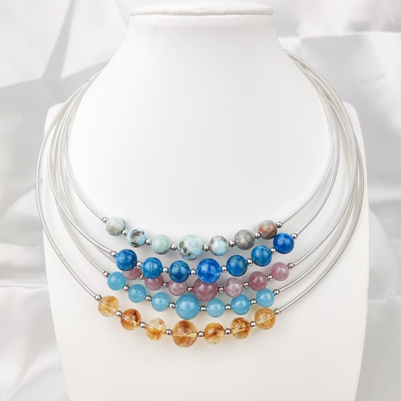 Crystal Malachite Cross Border Necklace Aquamarine Crystal Wholesale Collar Chain Wound Pearl Necklace