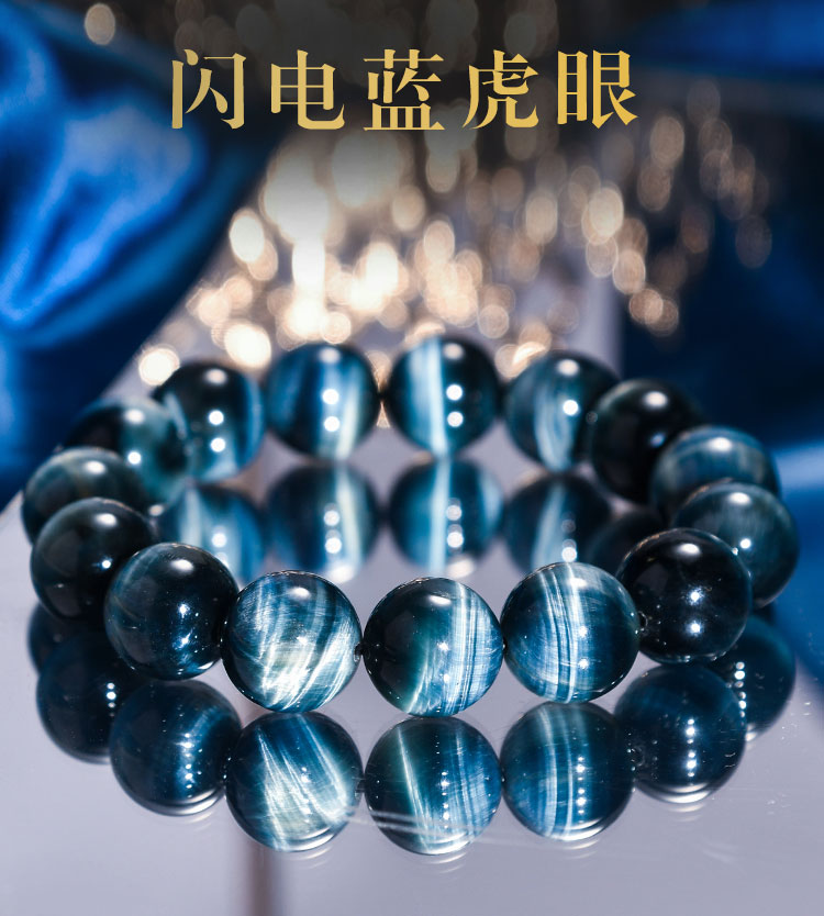Crystal old mine lightning yellow blue wood tiger eye stone bracelet