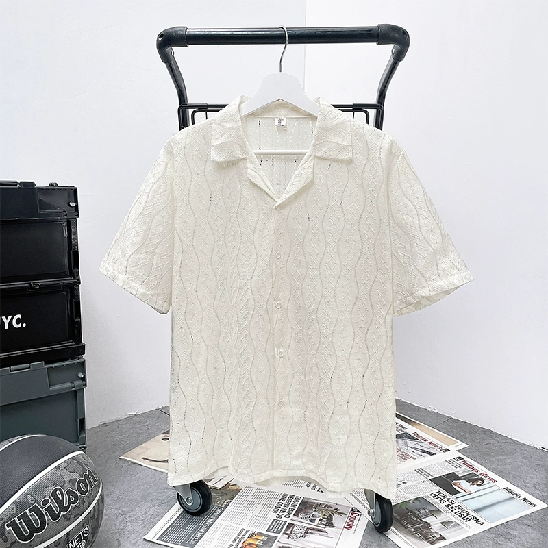 Cuban collar hollow casual cool short-sleeved shirt cardigan