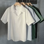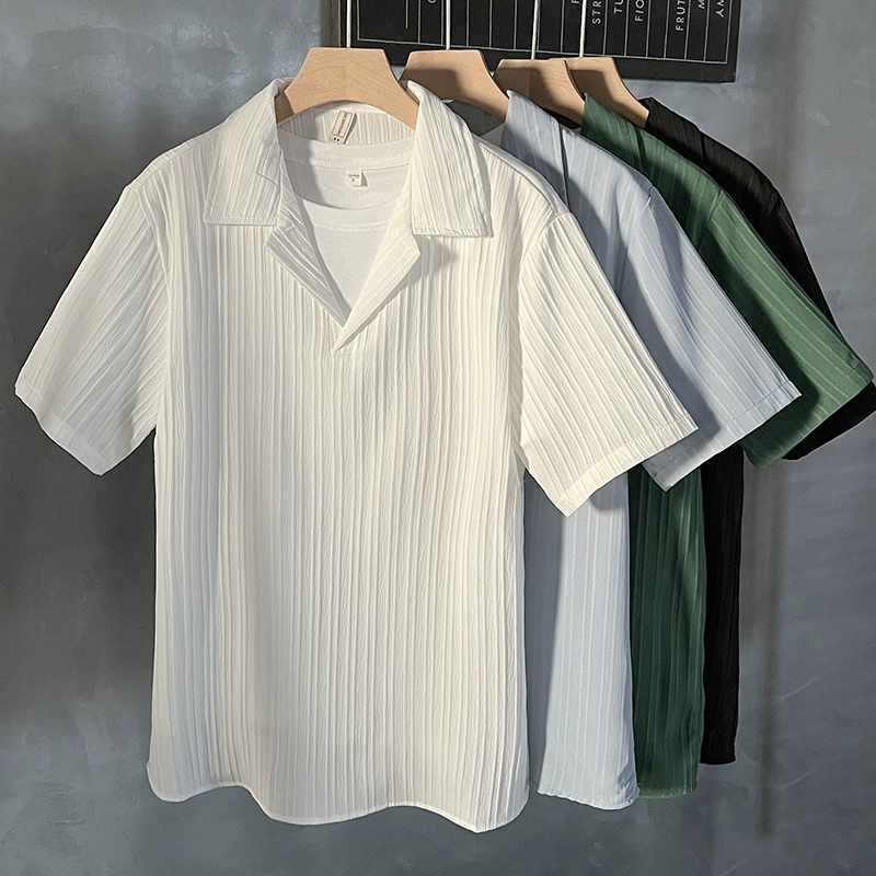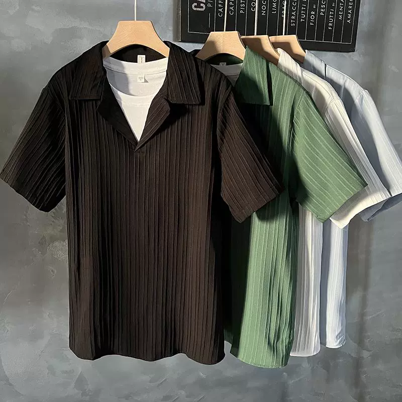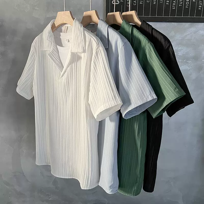 | nameOriginal | Cuban collar pullover short-sleeved shirt men's simple 2024 summer popular handsome five-quarter sleeve drapey ice silk shirt |