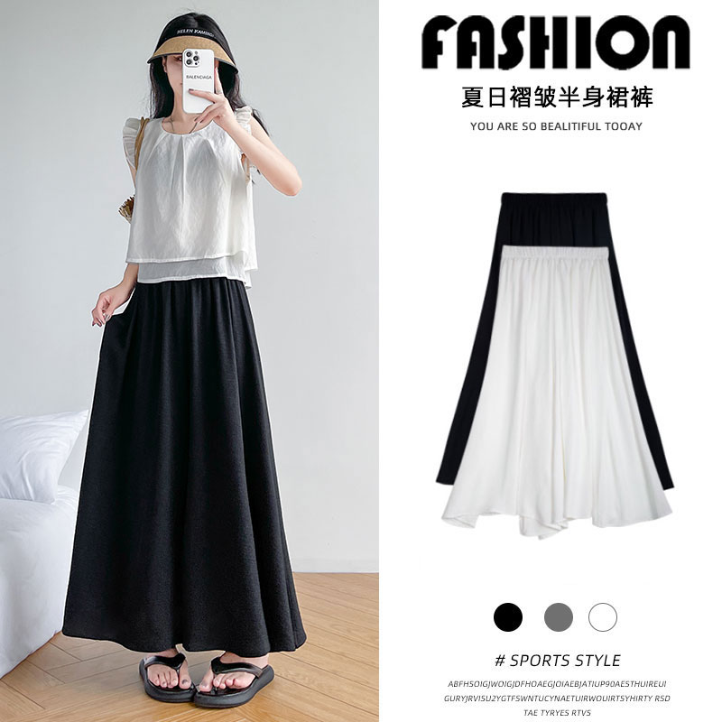 | nameOriginal | Culottes Women's Summer Thin 2024 New A- Line Half-length Skirt Spring and Autumn Fairy Small Draps Wide Leg Skirt |