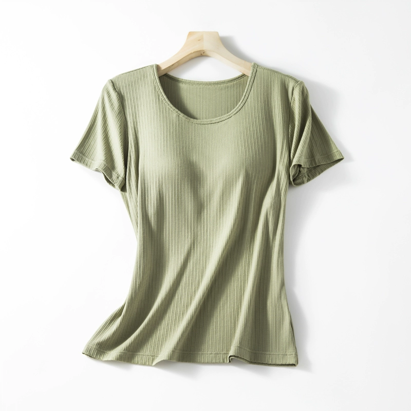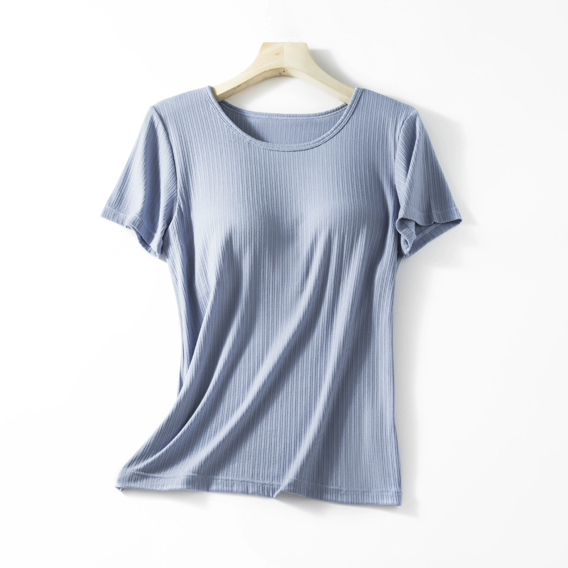 Cup integrated solid color home wear sports short-sleeved T-shirt