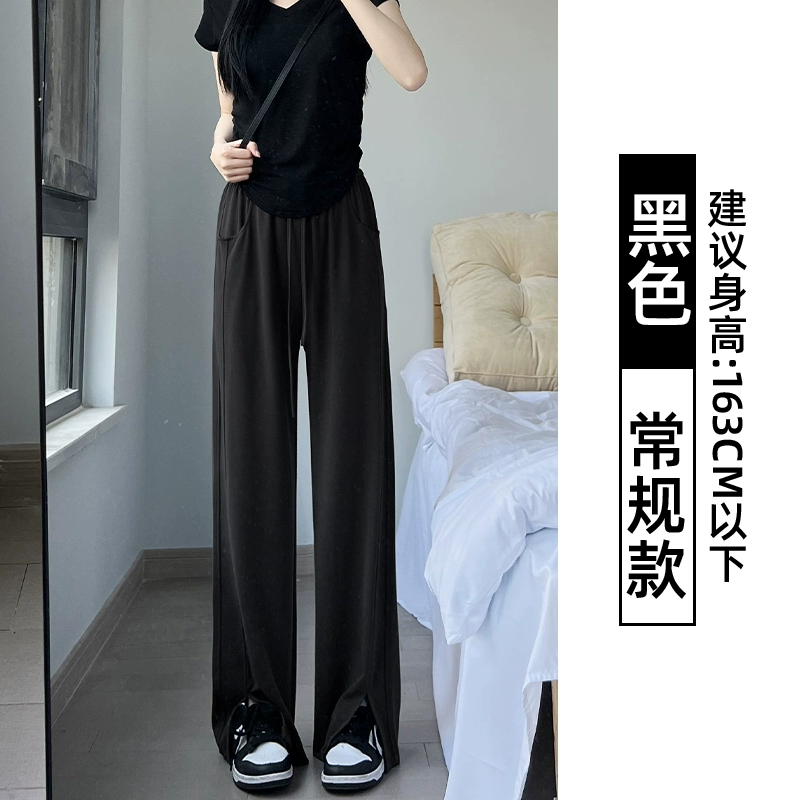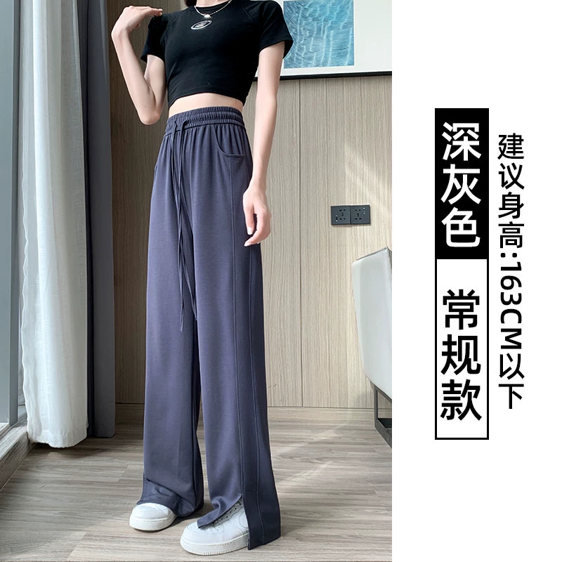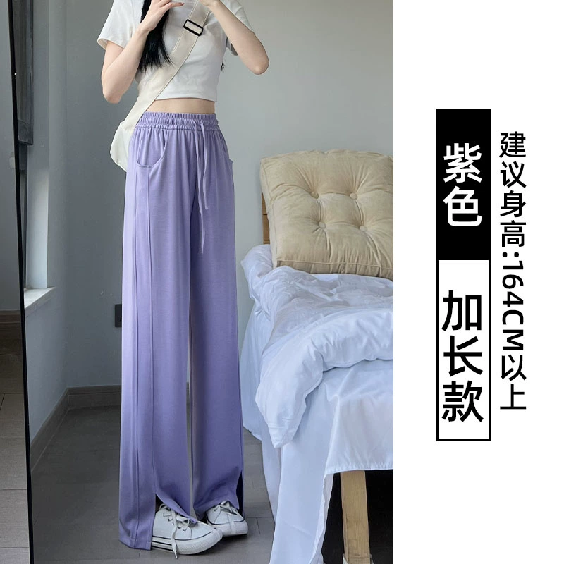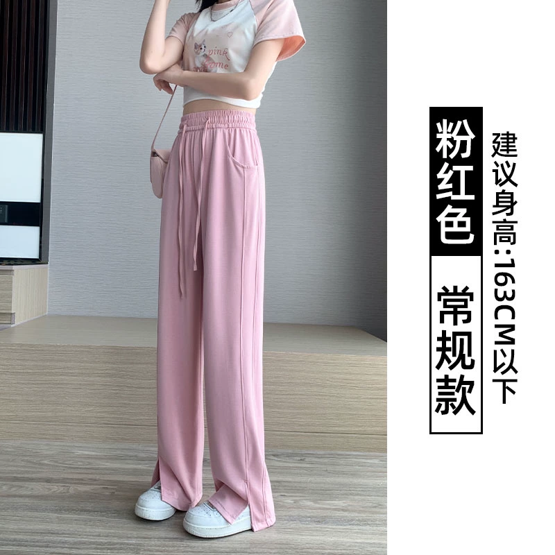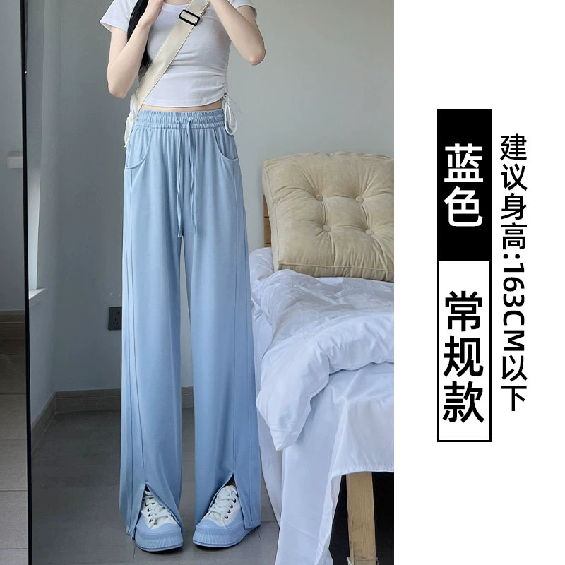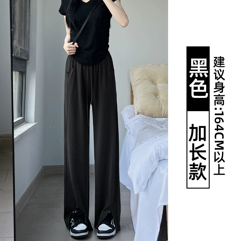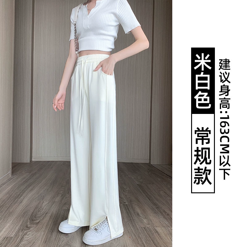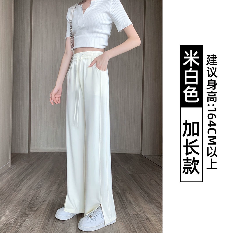 | nameOriginal | Cupro high waist casual straight leg slit wide leg pants |