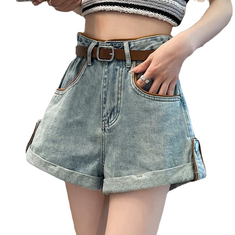 Curled Denim Shorts Women’s Summer Thin 2024 Slimming High Waist Flower Bud Women’s A- shape Tooling Hot Pants Trendy