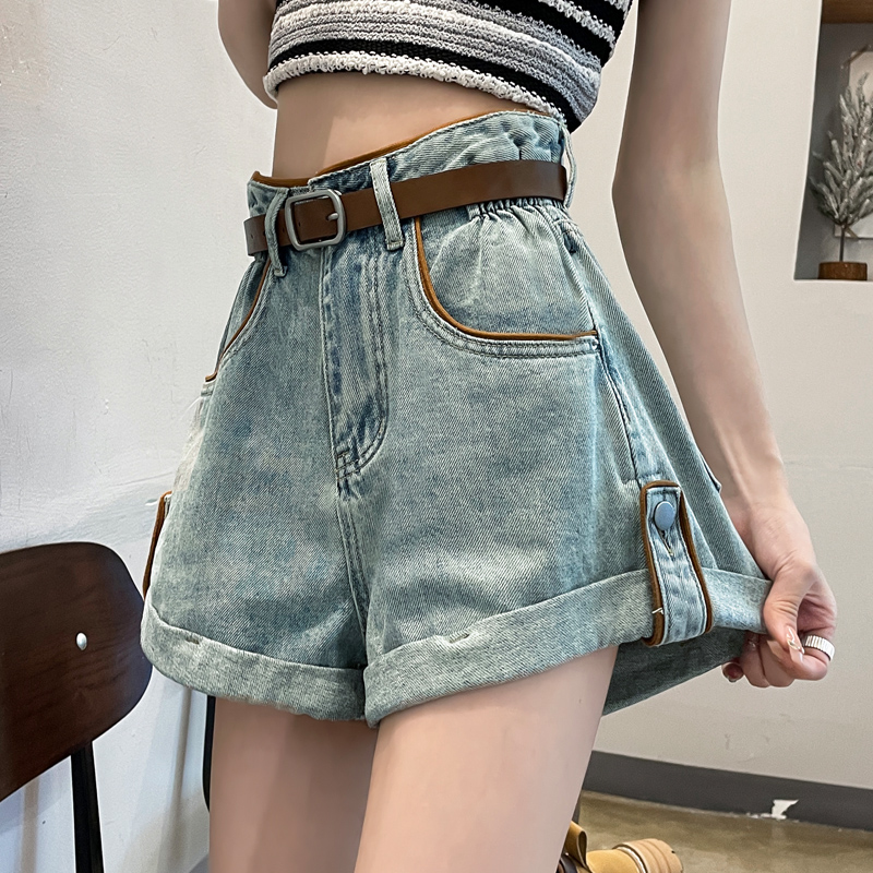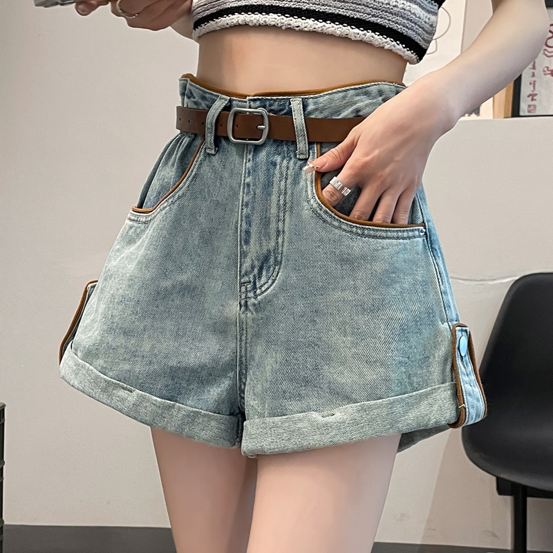 | nameOriginal | Curled Denim Shorts Women's Summer Thin 2024 Slimming High Waist Flower Bud Women's A- Shed Tooling Hot Pants Trendy |