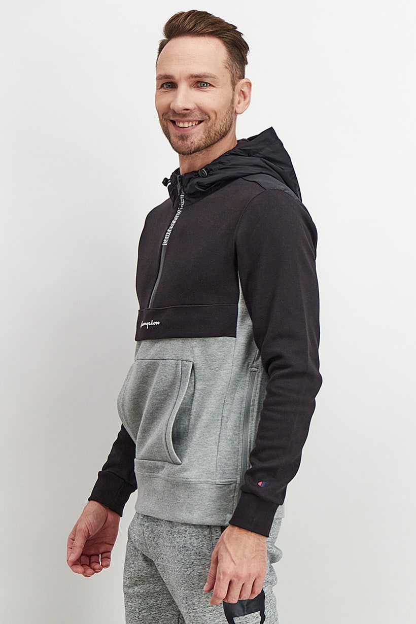 Care : Machine washable, Fit : Custom fit, Size shown : US, Thickness : Light, Type of Sport : Training, Disclaimer : Product color may slightly vary due to photographic lighting sources or your monitor settings., Fabrics : 76% Cotton, 24% Polyester, Pattern & Print : Colorblock, Sportswear Type : Sweatshirts, Color Family : Black, Grey,