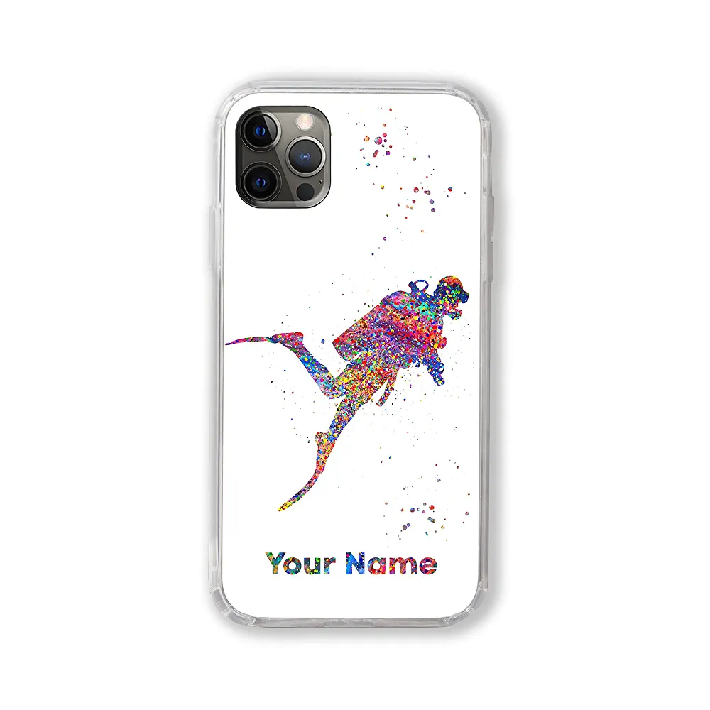 Scuba diving Man Personalized Phone Case Custom Name Customized Text compatible with iPhone, Samsung and other models