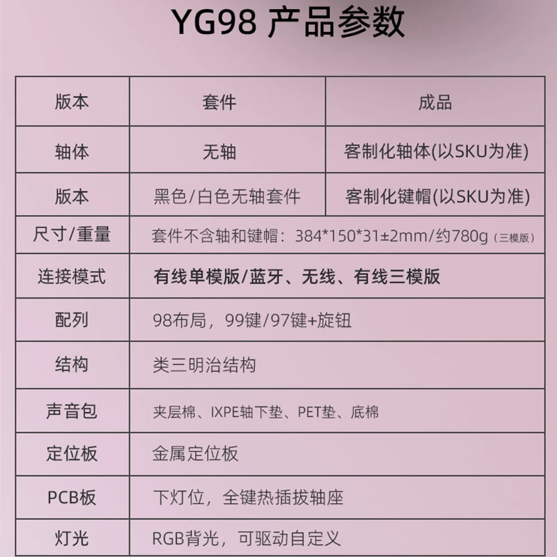 | nameOriginal | Customized mechanical keyboard kit Heijishe YG98 wireless mahjong sound mute replaceable keycap game |