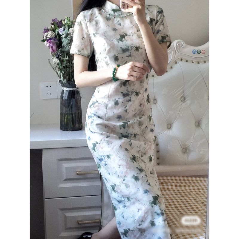 | nameOriginal | Cut bone blue cheongsam for Women summer 2023 new young fashionable long short sleeve lace temperament dress |