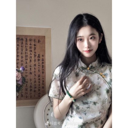 | nameOriginal | Cut bone blue cheongsam for Women summer 2023 new young fashionable long short sleeve lace temperament dress |