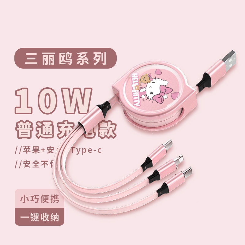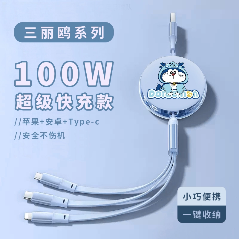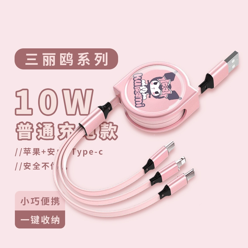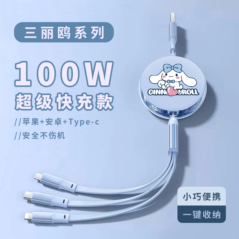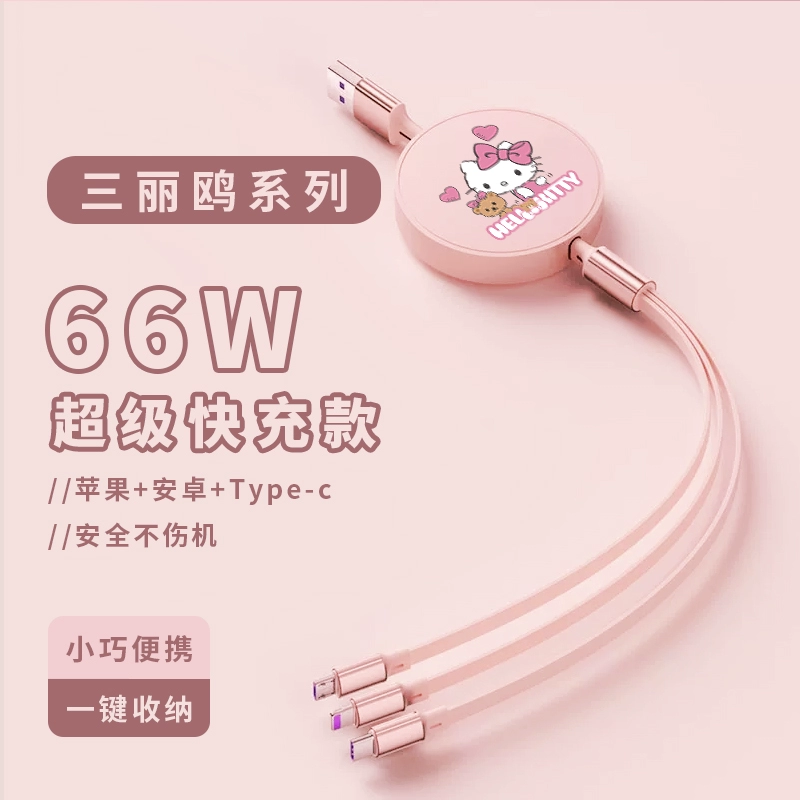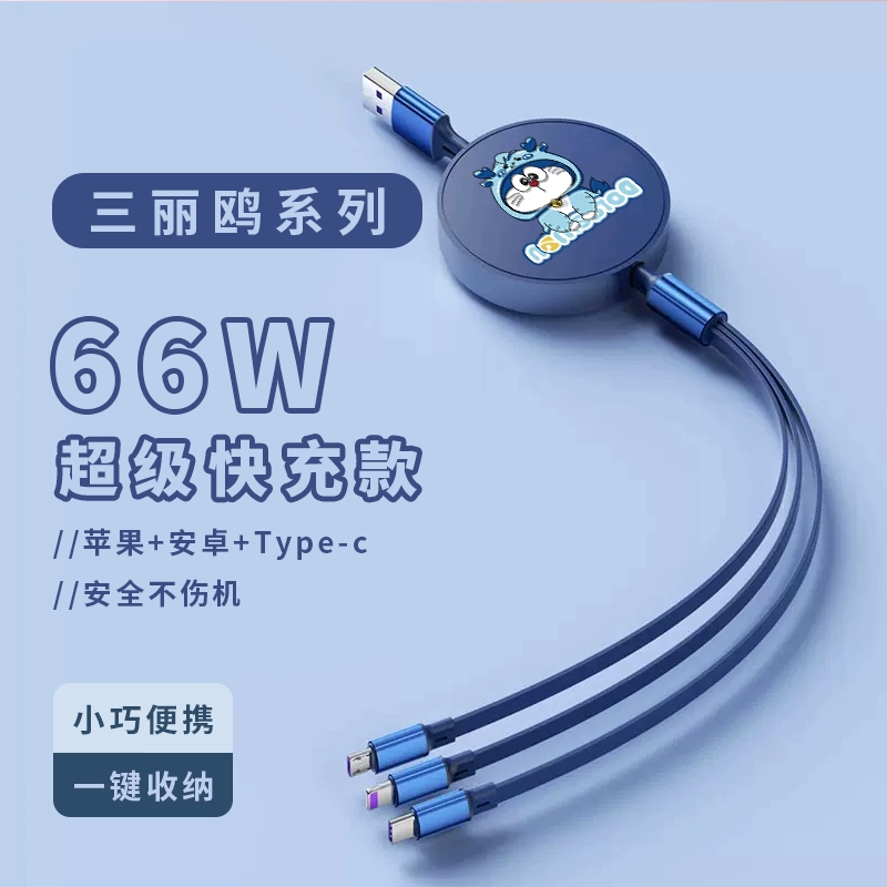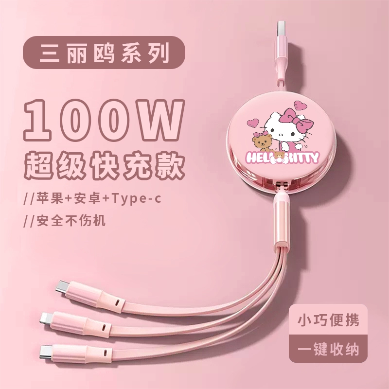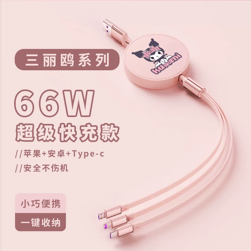 Cute 100W super fast charging one-to-three data cable three-head telescopic three-in-one 66W charging cable multi-head suitable for Apple Huawei Honor vivo Xiaomi oppo Samsung Android typec universal