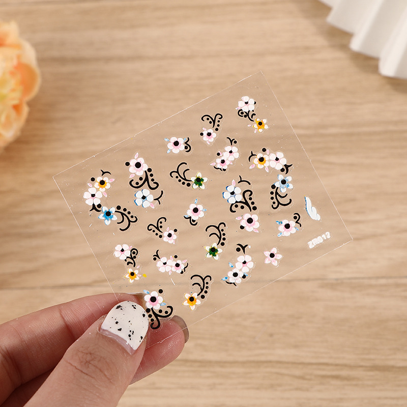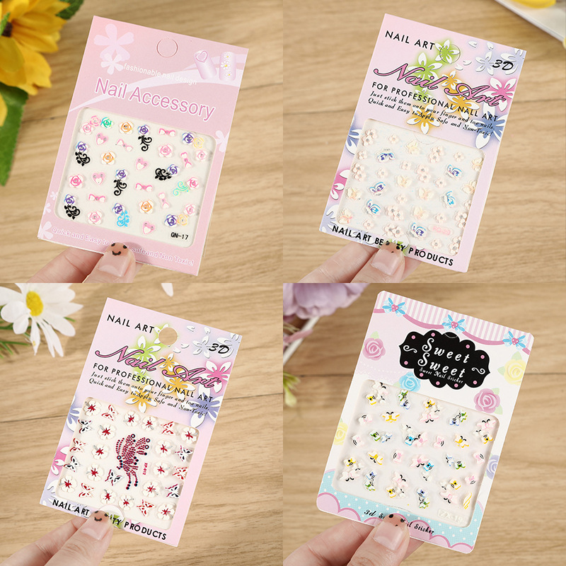 | nameOriginal | Cute 3D embossed PET luminous children's nail patch ins flower nail art sticker color decorative decal wholesale |